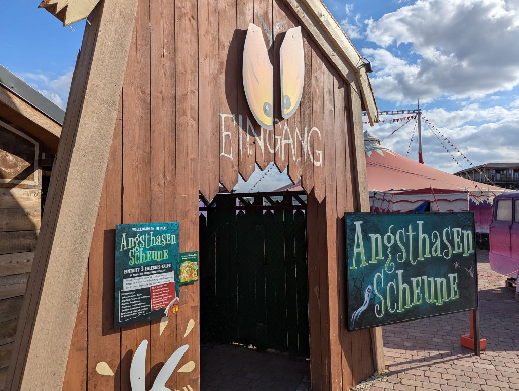 Seit unserem ersten Besuch im letzten Sommer kurz nach Eröffnung des Dorfes hat sich zudem eine Angsthasen-Scheune hinzugesellt. Wenn ich mich nicht täusche, ist sie größer als das Pendant in Elstal und Rövershagen 🍓 – ganz schön… gruselig!