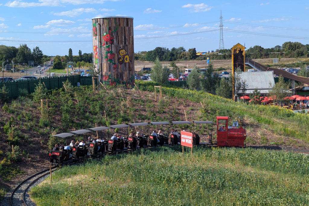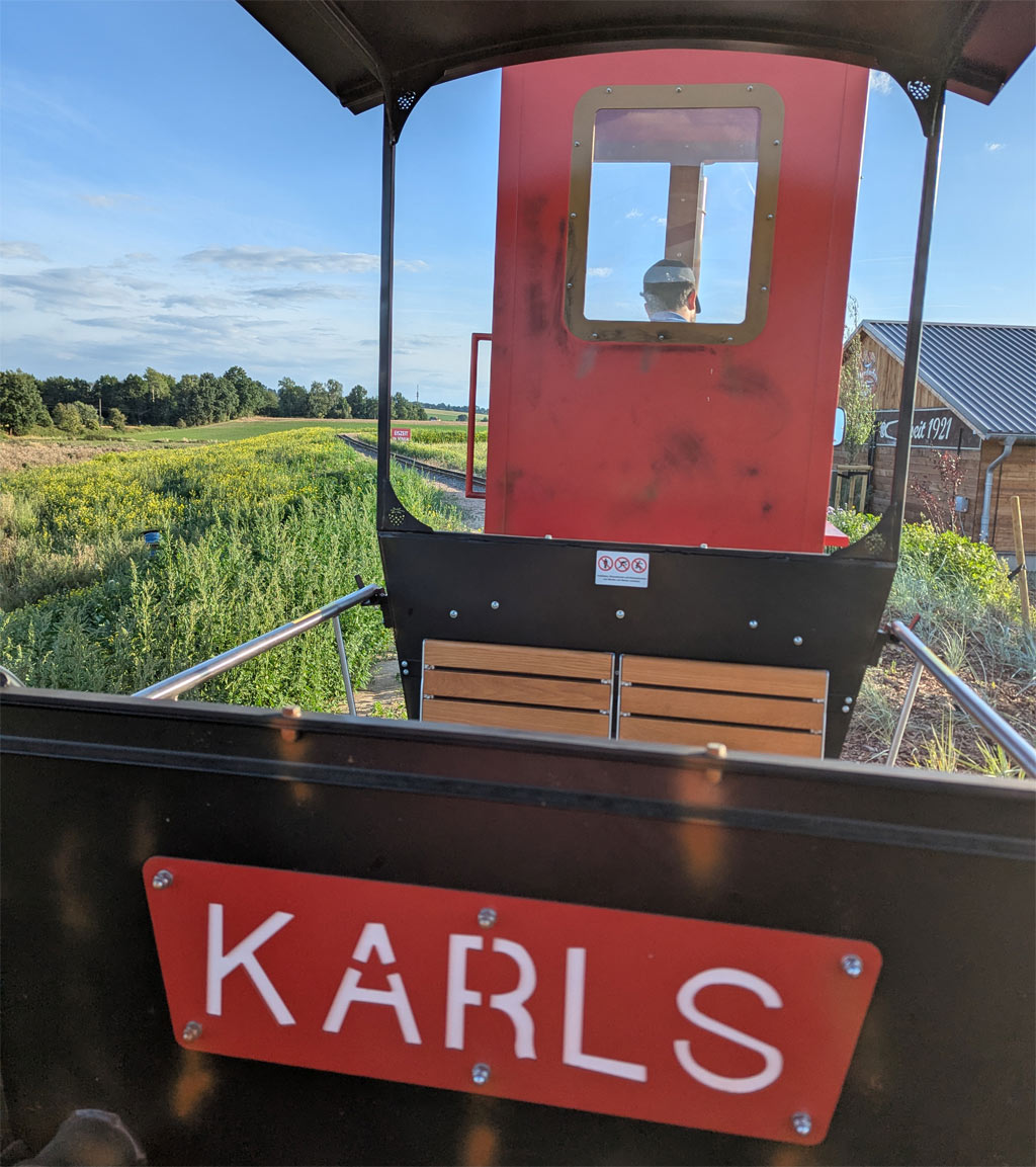 Vor wenigen Wochen haben wir das Karls Erlebnis-Dorf in Döbeln ein zweites Mal besucht – über unsere Übernachtung im neuen Karls Bande Hotel werde ich noch berichten. Neu ist davon ab allen voran die LPG Rote Rübe. Die elektrisch betriebene Feldbahn, analog Elstal 🍓, fährt einmal munter im Kreis, und umrundet primär jene unbebaute Fläche, auf der sich aller Voraussicht nach ab Sommer 2026 das neue Achterbahn-Spektakel abspielt.