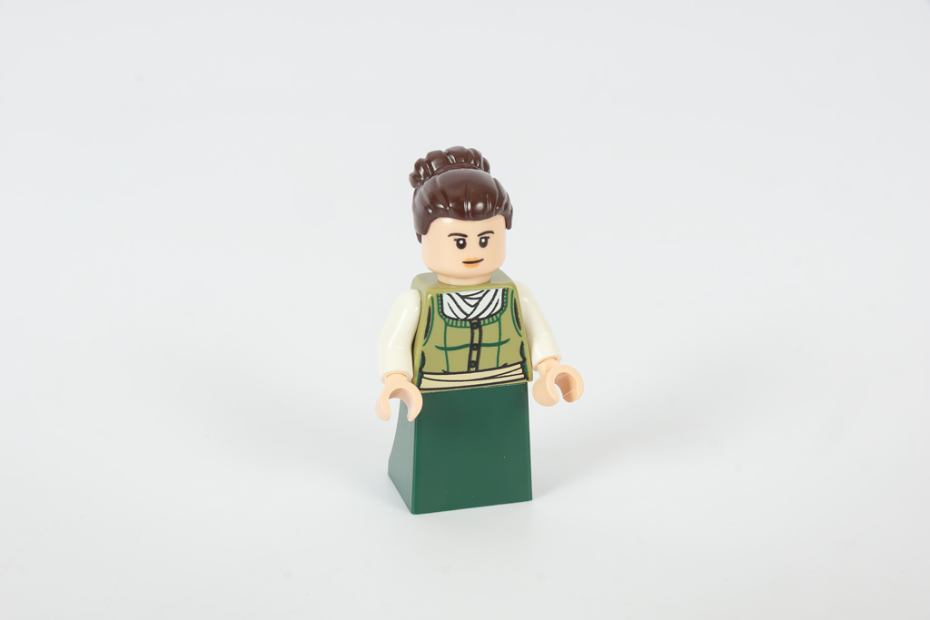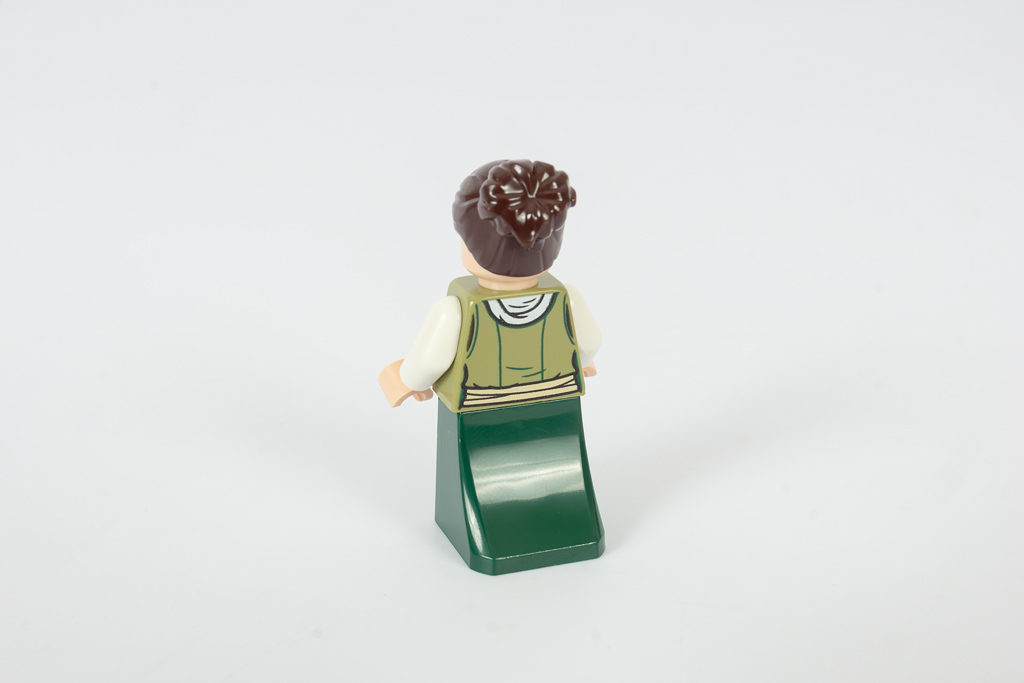 Zunächst bauen wir Jane Austen (gen194), die mit einem dunkelgrünen, unbedruckten Rock (36036), einem olivgrünen Torso (973pb6073c01) aus dem Set 10354 Der Herr der Ringe: Das Auenland, hochgesteckten Haaren (27186) und einem eher ernsten Gesichtsausdruck (3626pb3839) gestaltet wurde. Wie bei GWPs eher üblich, ist kein Element exklusiv, selbst der (doppelseitige) Kopf stammt aus dem Set 21354 Das Haus der Cullens aus Twilight. Dennoch werden bei BrickLink gerade 10 bis 20 Euro für die Figur verlangt. Äh, ja, klar?!
