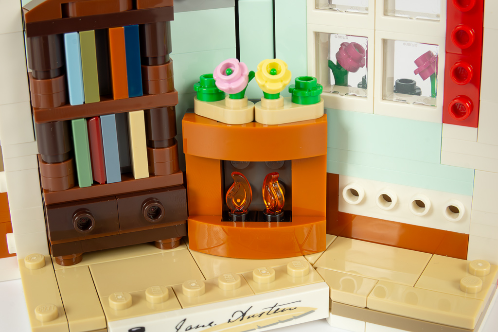 Zusammengenommen wird die 40766 Hommage an die Bücher von Jane Austen ihrem Anspruch gerecht, Jane Austen Tribut zu zollen. Wenngleich ihre Werke nur in Form von Bildern an der Wand dargestellt sind (und noch dazu nur die Verfilmungen der Werke), bietet das Set ein schönes Diorama ihrer Schreibstube. Der Innenraum ist vollgepackt mit Details, aber auch die Rückseite braucht sich nicht zu verstecken. Dazu kommt die ungewöhnliche Struktur mit dem 135-Grad-Winkel und dem klug gebauten Buchrücken, benebst der diesmal bedruckten Kachel mit Jane Austens Signum.
