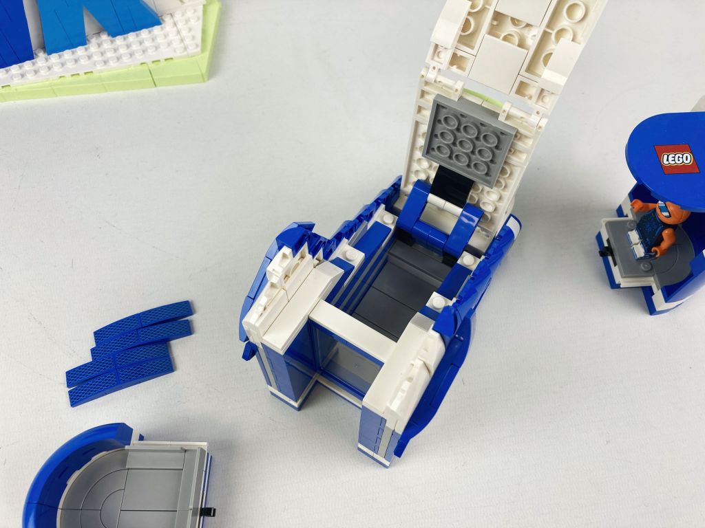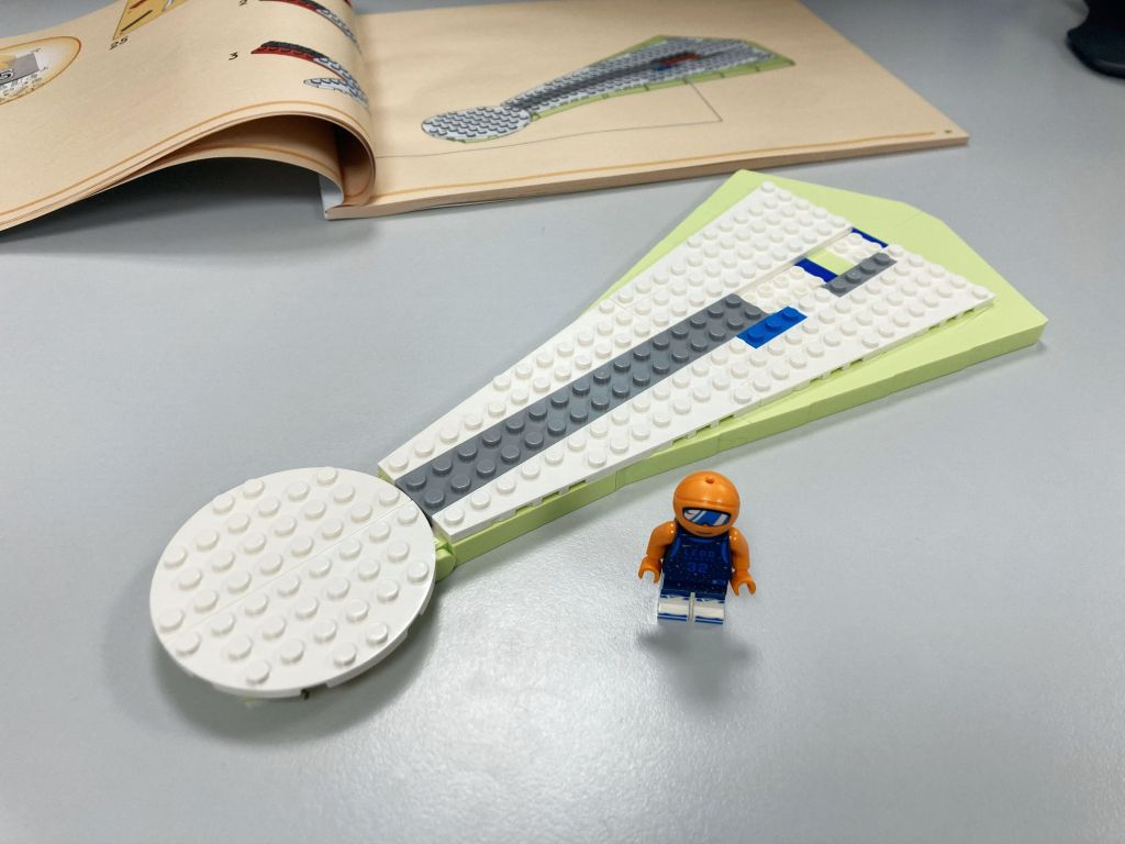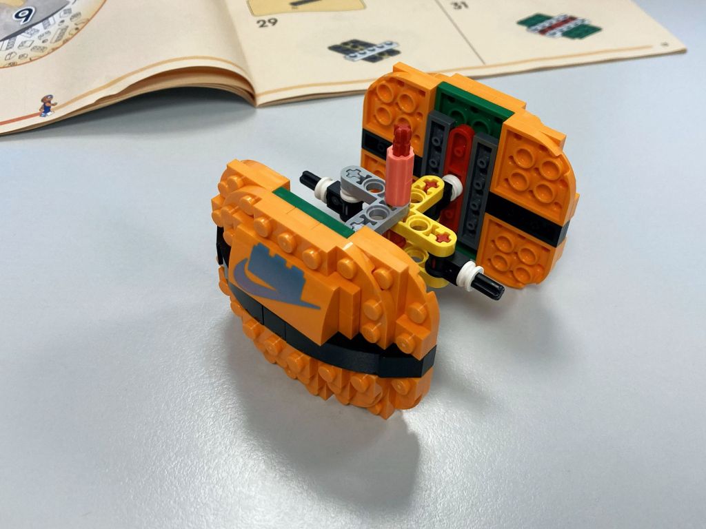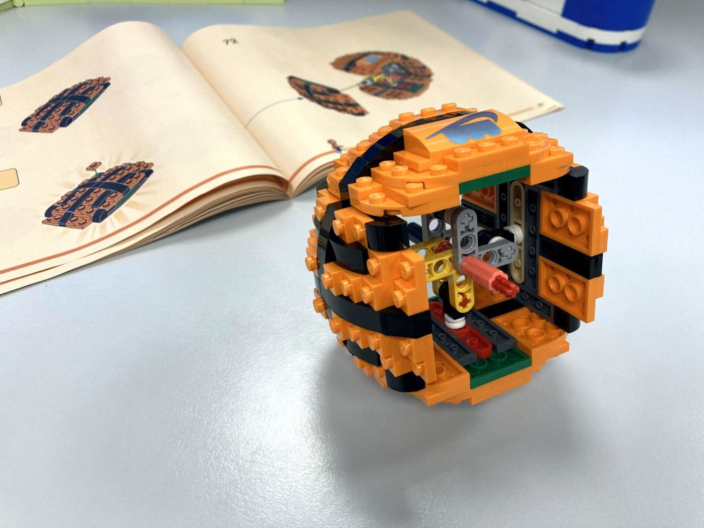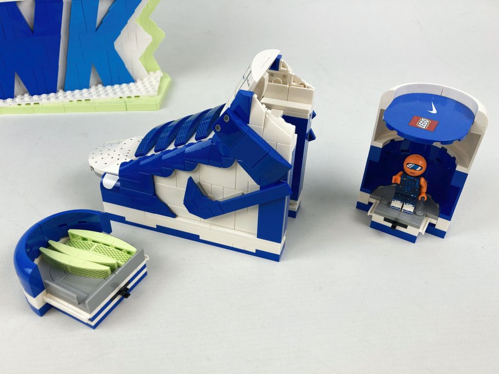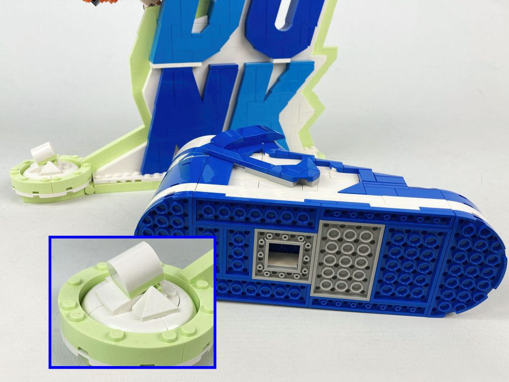 Der Schuh wirkt recht steif (Überraschung…), gefällt mir aufgebaut aber sogar etwas besser, als es das Produktfoto erahnen lässt. Die geschwungenen Linien eines Schuhs oder seiner Sohle lassen sich eben nur bedingt gut mit LEGO Bausteinen nachbilden. Die kleinen Geheimfächer sind nett umgesetzt. Im drehbaren Basketball sehe ich nur eingeschränkt eine sinnvolle Funktion. Sie stört andererseits auch nicht.