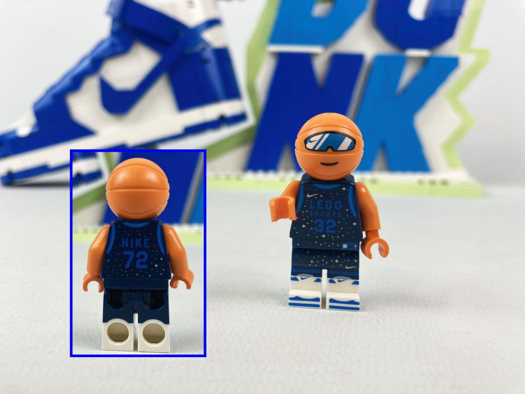 Zu guter Letzt gesellt sich noch ein kleiner Kollege zum Set namens B’Ball Head. Eine kleine, Set-exklusive Minifigur im Basketballtrikot. Die Nummer 32 auf der Vorderseite steht für das Jahr, in dem der Gründer der LEGO Gruppe sein erstes Spielzeug herausbrachte. Wie Kenner wissen, waren das noch keine Klemmbausteine, sondern Holzspielzeug. Im Jahr 1972 (die 72 auf der Rückseite) hat Nike seine ersten Schuhe auf den Markt gebracht.