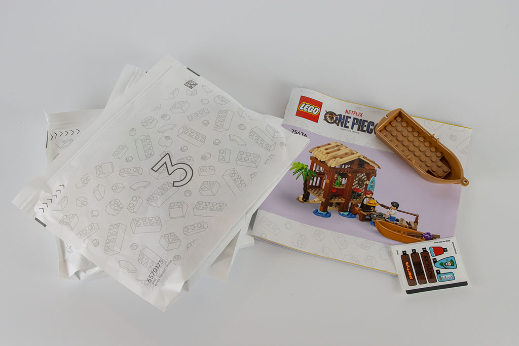 Das erste Set ist eine Hütte, die für den jungen Ruffy (oder Luffy) eine wichtige Rolle spielt. Dort hat er in seiner Kindheit viel Zeit verbracht und sein Idol den Piraten Shanks kennengelernt. Auch hat er dort die Teufelsfrucht gefunden und verspeist, die ihm seine Gummi-Kräfte verliehen hat.