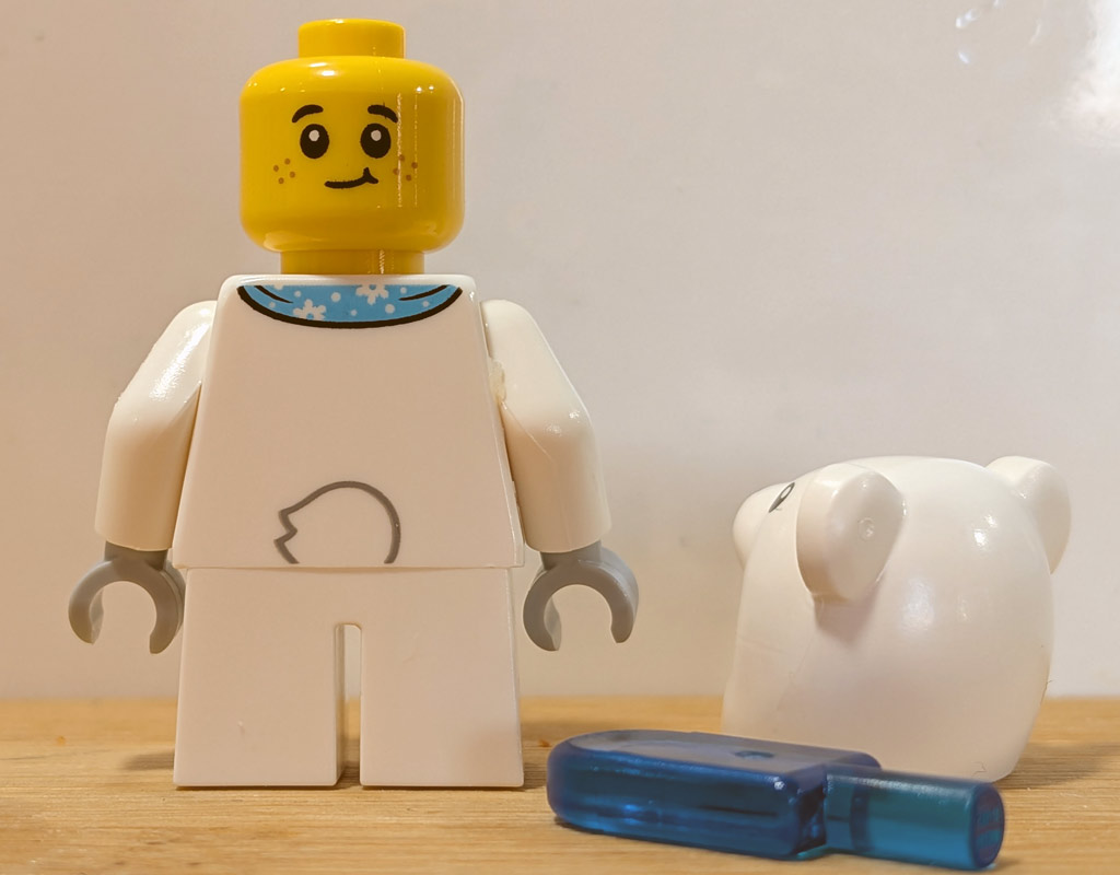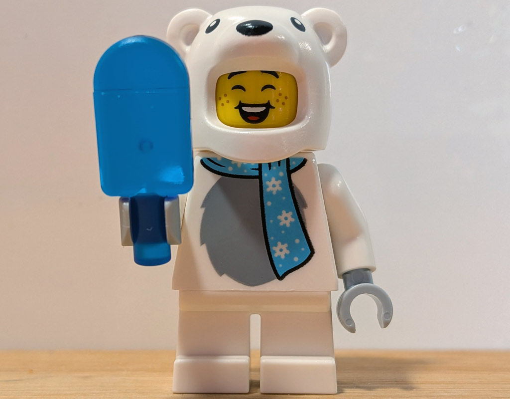Ach, das geht ja gleich mal richtig gut los: Eine Kinder-Minifigur im Eisbären-Kostüm! Und was darf bei Minusgeraden nicht fehlen? Genau, ein… Wassereis! / Andres