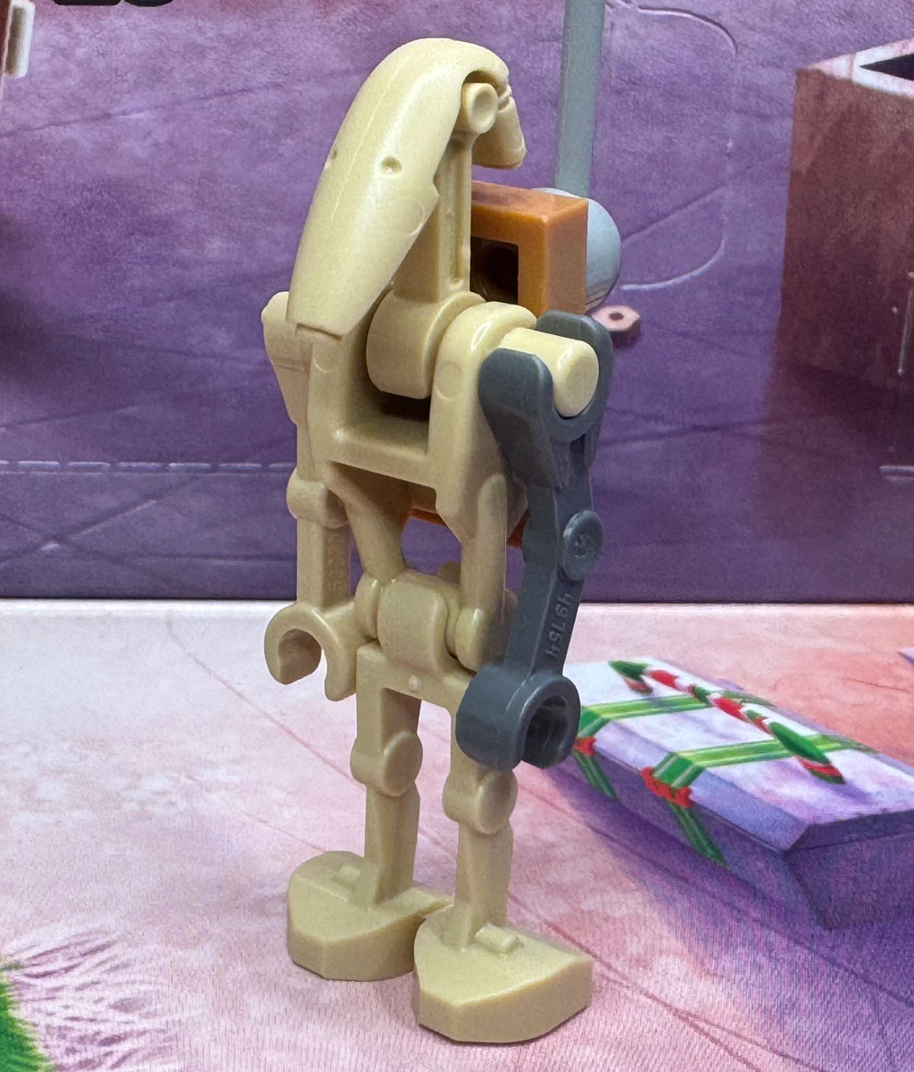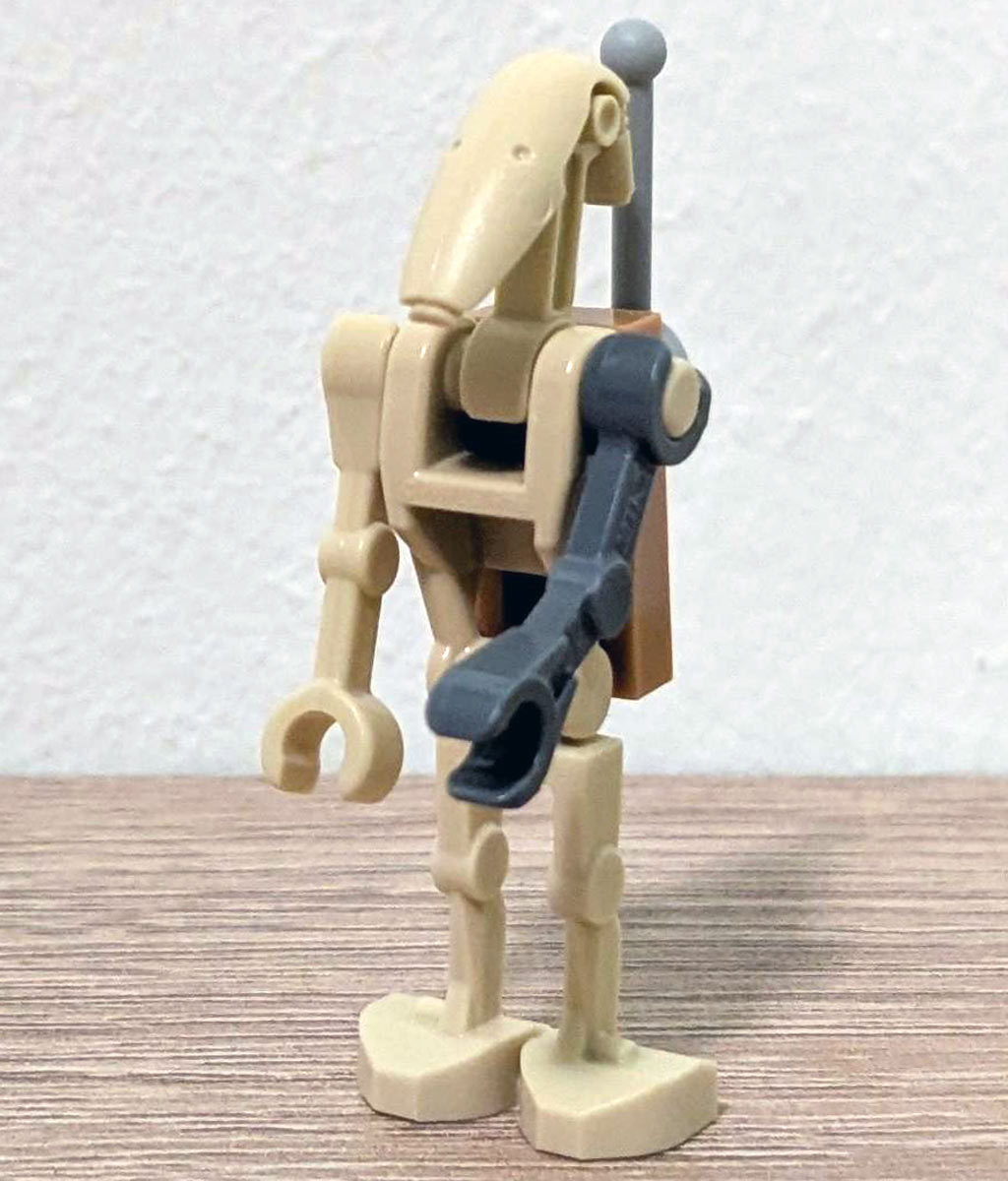 Heute bauen wir einen B1-Kampfdroiden. Der Kollege scheint eher zusammengeschustert zu sein, so haben nämlich Arm und Rucksack die falschen Farben. / Max