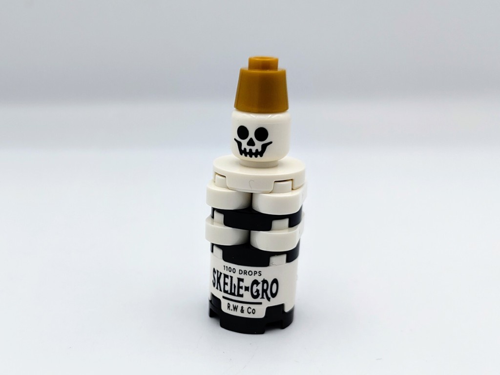 Tag 18 hält mal wieder ein Highlight bereit – ähnlich dem Vielsafttrank eine kleine Flasche des Skelewachses, der in einem schmerzhaften Prozess Knochen nachwachsen lässt. Hier hat LEGO einen runden 2×2 Stein mit einem neuen Print versehen. / Johann