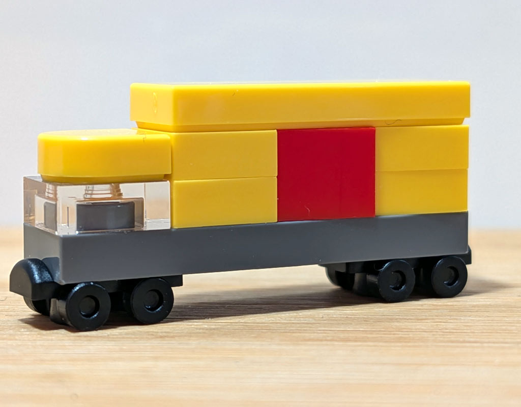 Der Baunachwuchs urteilt: „Das ist eine voll witzige Idee.“ Ein kleiner LEGO-Truck! / Andres
