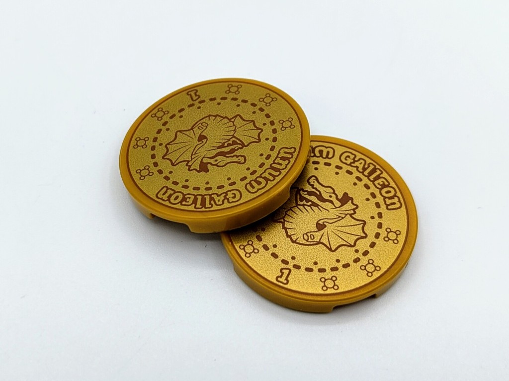 Ui cool – diese Tür hat mich überrascht & ist neben den bunten Bohnen mein bisheriger Favorit. Zwei goldene Galleonen, gedruckt auf eine runde 3×3 Fliese. Dieses Motiv ist bisher erst in einem Set, der 76417 Zaubererbank Gringotts enthalten gewesen – ich finde es super, dass das magische Zahlungsmittel jetzt noch ein bisschen weitere Verbreitung erfährt. / Johann