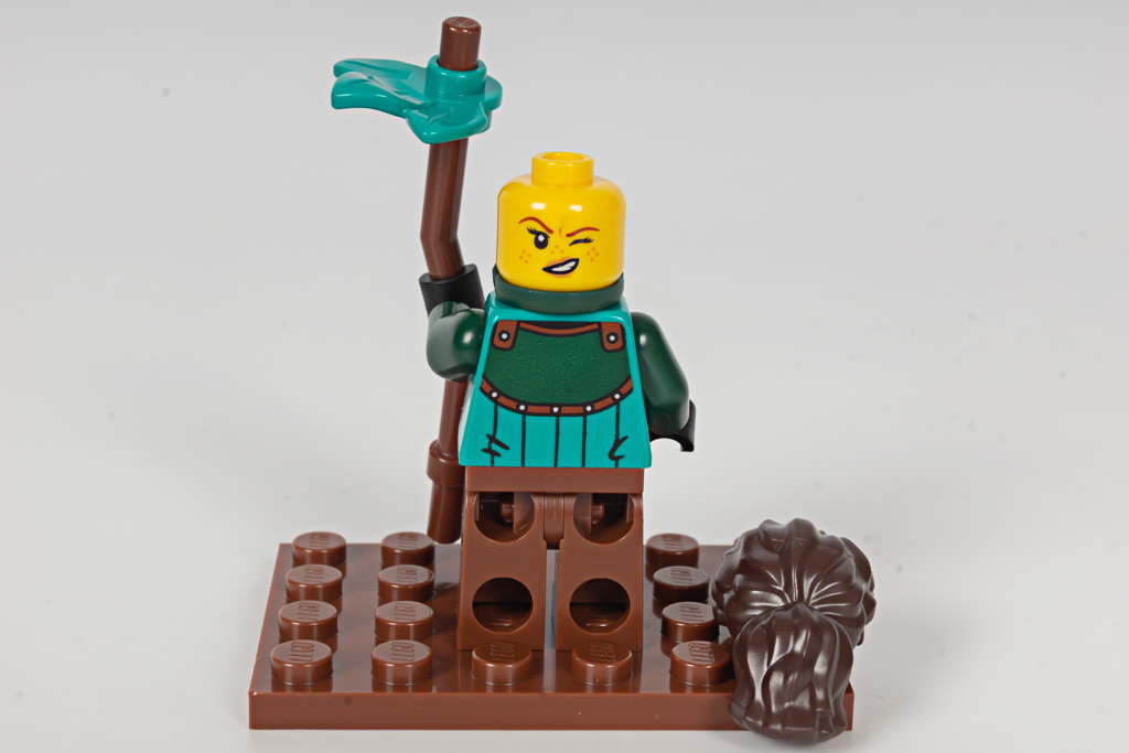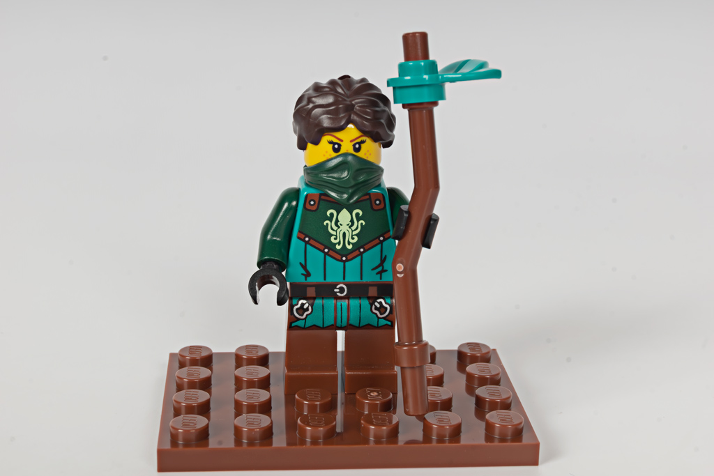 Die bereits dritte Minifigur nutzt den Torso (973pb6132c01) und die Beine (970c00pb1761) der im letzten Jahr im 21358 Spielzeugautomaten mit Minifiguren eingeführten Krakenritter, ist aber eine Banditin! Eine Abtrünnige? Oder sind die Krakenritter alle so böse? (Interessant ist an dieser Stelle die Feststellung, dass LEGO der Fraktion keine eigentliche Aufgabe gegeben hat, in diversen MOCs aber von vornherein die Krakenritter als Böse angesehen wurden!)