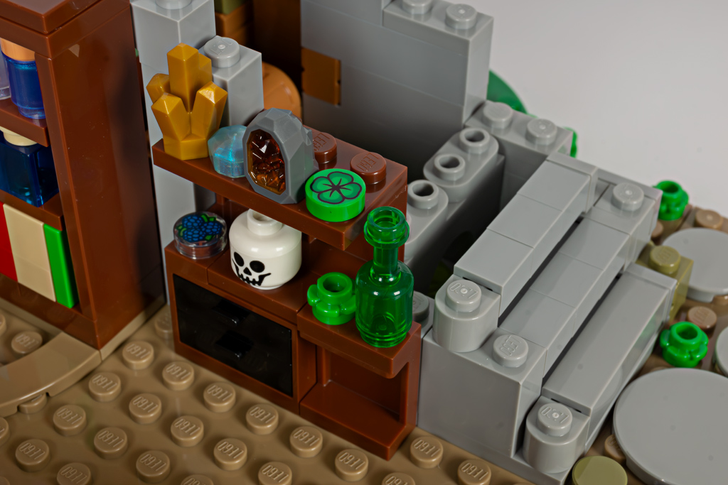 Erkannt? Dieses Minimodell ist mein absolutes Highlight am ganzen Set. Mit nur wenigen Handvoll Teilen hat der Designer es verstanden, der als Vorbild des Ladens des Alchemisten dienenden 21325 Mittelalterlichen Schmiede ein unverkennbares Denkmal zu setzen. Absolut fantastisch!