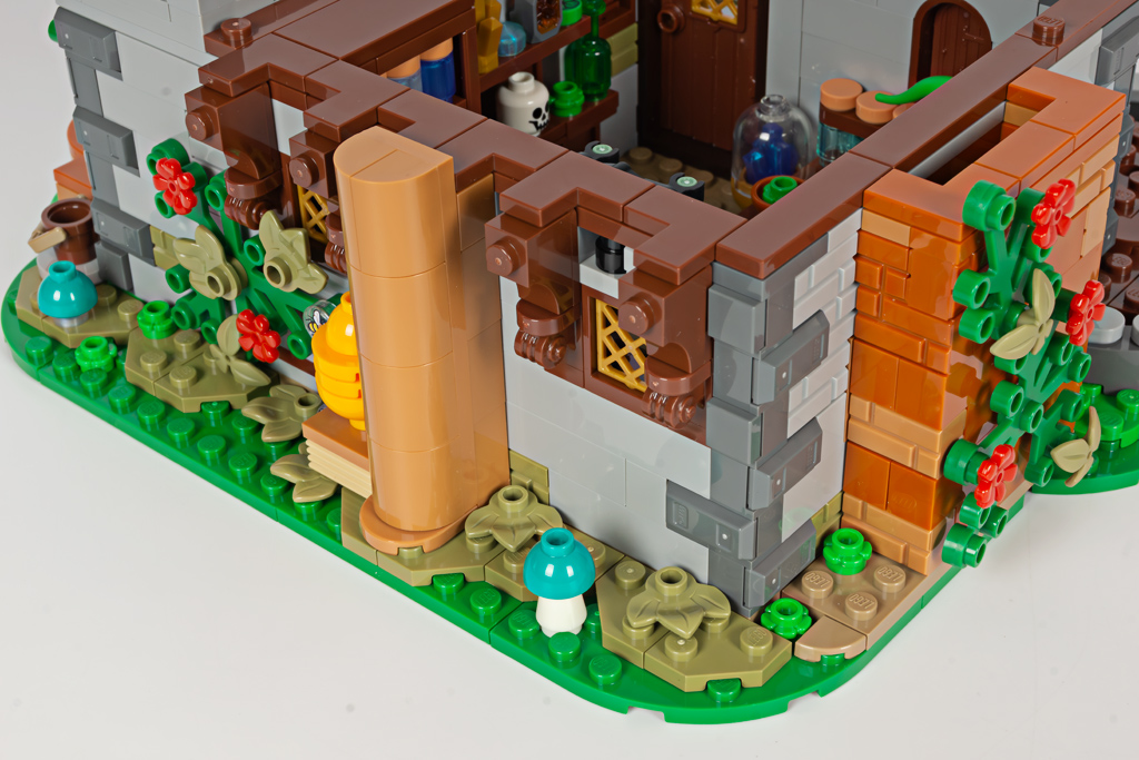An der Außenseite folgen noch ein paar Details, wie eine Kiste mit Tränken, eine Sonnenblume, ein Bienennest und Pilze.