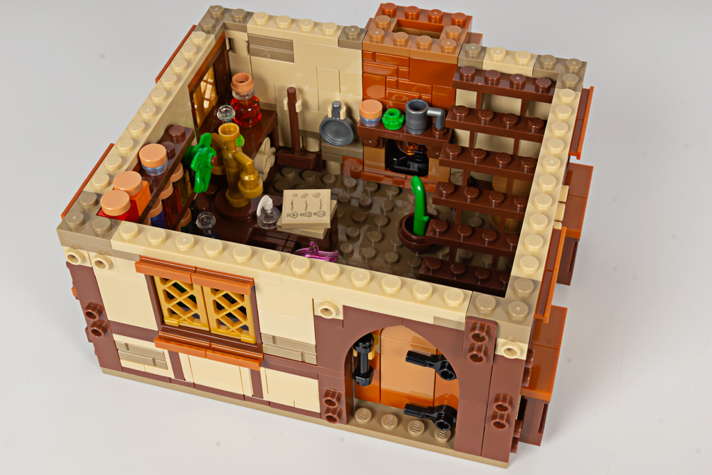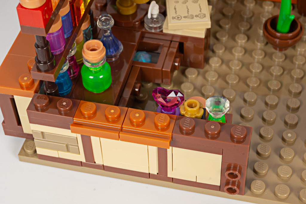 Nun endlich widmen wir uns dem Laden des Alchemisten selbst, der auf einer 26 x 29 Noppen messenden, gebauten Bodenplatte steht.