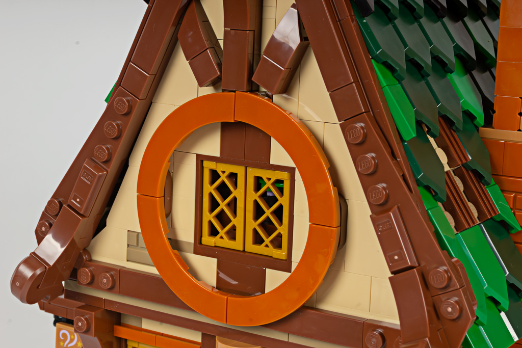 Eines der definierendsten Charakteristika des Alchemisten-Ladens sind die beiden rund umrandeten Fenster am Dachgeschoss, die von Holzbalken flankiert werden. Diese Art des Fachwerks wirkt schlicht fantastisch, ebenso die vorspringenden Bögen am First.