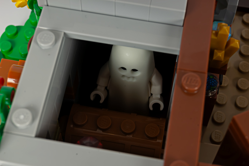 Für den Fall, dass die Krakenritter es zu bunt treiben, hat der Alchemist sein eigenes Haus- und Hof-Gespenst. Dessen nachtleuchtender Umhang (7103) ist 2025 gerade erst im 31167 Geisterhaus eingeführt worden, passt aber fast noch besser ins finstere Mittelalter. So dunkel, wie es da ist, tut ein wenig Erleuchtung not, und sei es nur durch schwache Phosphoreszenz!
