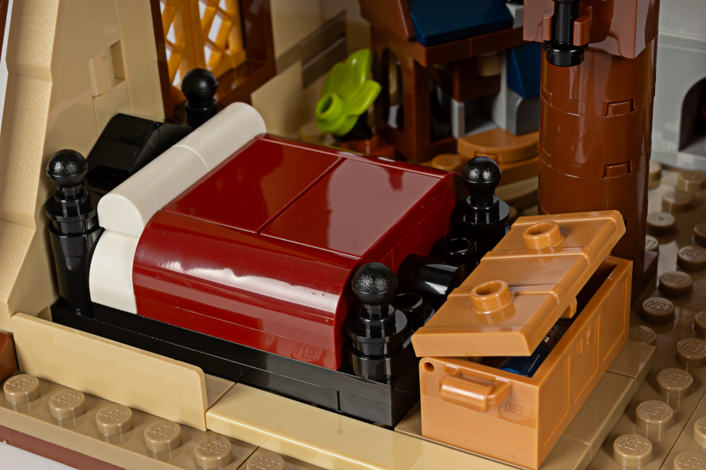 Das Modell kommt in eine Ecke zwischen Kamin und Bett, und bezeugt, dass der Alchemist in seiner Freizeit gern Konstruktionsspielzeug nutzt! Auch das Bett und der gegenüberliegende Toilettentisch sind sehr gelungen gebaut und gefallen mir wirklich gut!