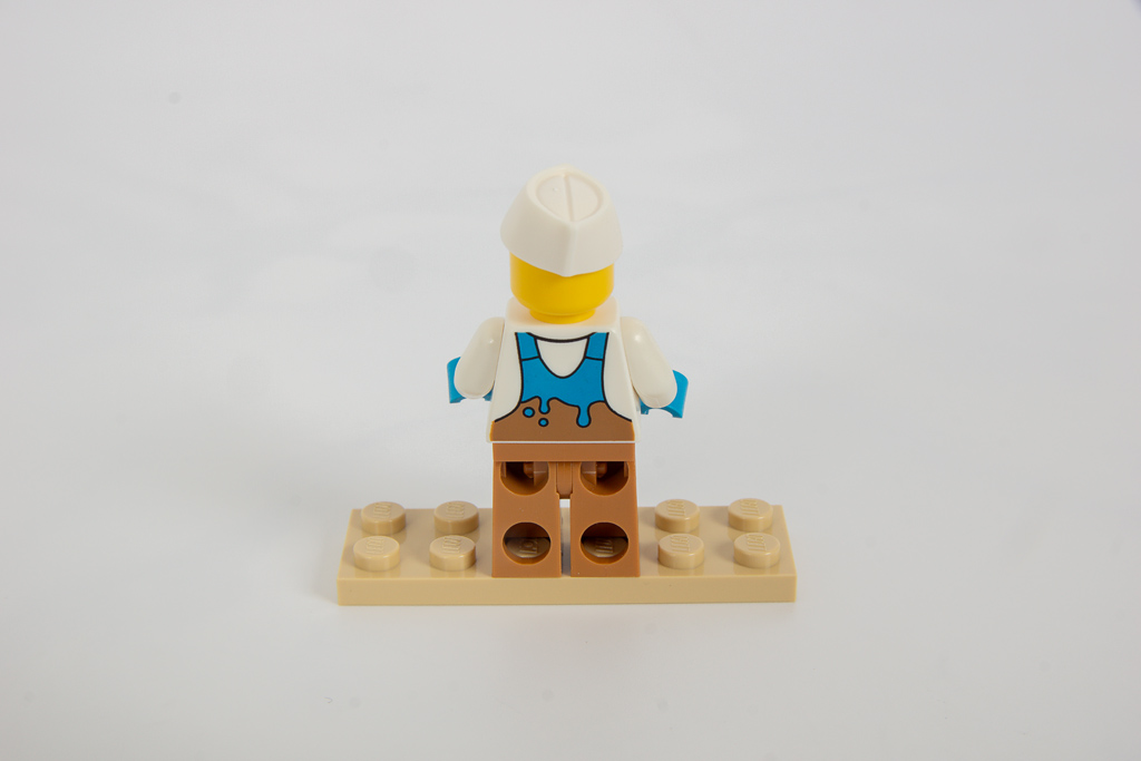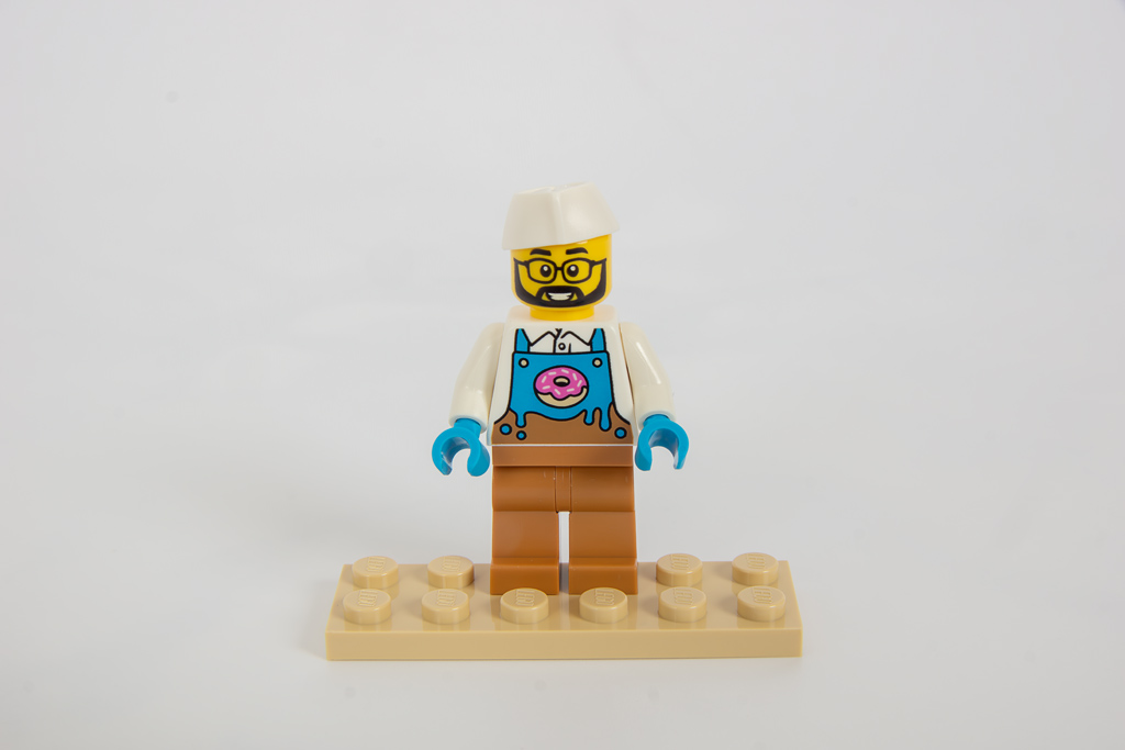 Der sehr freundlich lächelnde, also zweifelsohne hinterlistig gemeine, Konditor (cty1860) verfügt über eine Latzhose in herrlicher Zuckerguss-Optik. Der Torso (973pb5996c01) ist neu und bisher exklusiv in dem Set enthalten. Wenn nicht gerade nächstes Jahr noch ein Donut-Shop erscheinen sollte, wird er wohl auch exklusiv bleiben. Ebenfalls gefällt mir der Hut (98381), der 2012 für den Fleischer (col06-14) in CMF-Serie 6 entwickelt wurde und seitdem den Kopf einiger weiterer Lebensmittelverkäufer schmücken durfte.