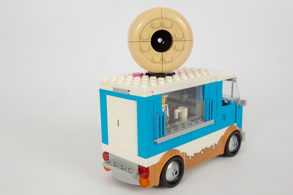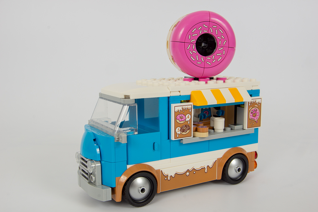 Bedingt durch die geringe Größe des Fahrzeugs ist der Donut-Stand einfach zu klein, wenn er auch allein stehen soll. Dieses Feature bietet zwar Spielspaß, ist aus Sicht eines erwachsenen Kindes aber nicht zu Ende gedacht, allein schon wegen der geringen Kombinierbarkeit mit dem Burger-Truck.