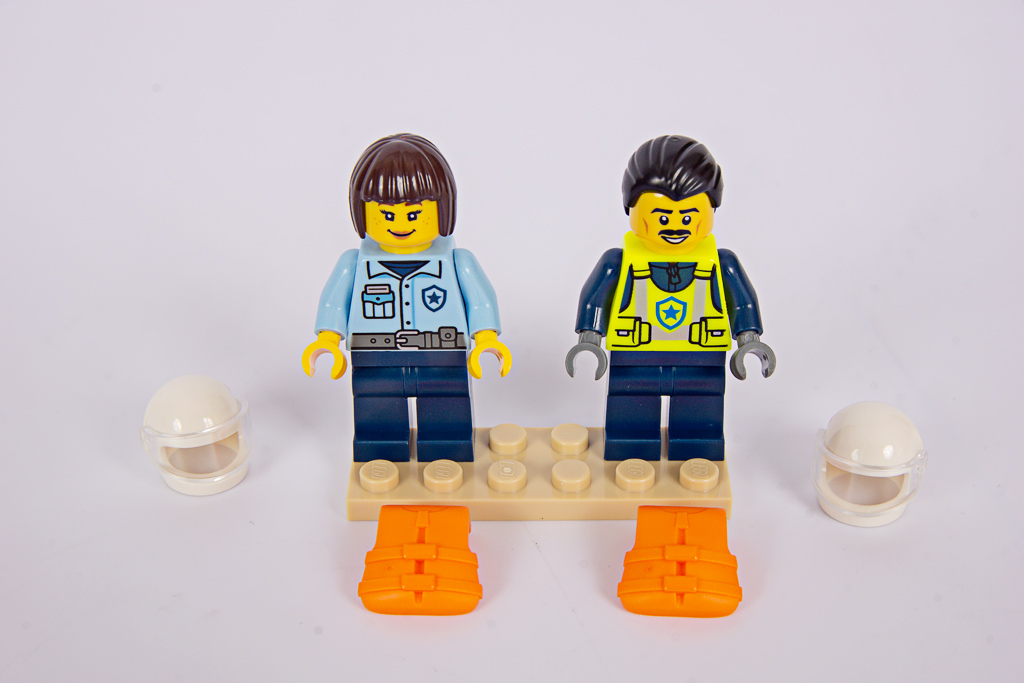 Sehr positiv hervorzuheben ist, dass das Set komplett auf Sticker verzichtet. Früher hätte ein Schiff am Rumpf die Setnummer oder einen „Polizei“-Schriftzug getragen. In der Badewanne lösen sich Aufkleber aber nur allzu schnell, sodass gerade schwimmfähige Boote keine nutzen sollten – von der allgemeinen Haltbarkeit von Stickern einmal abgesehen.