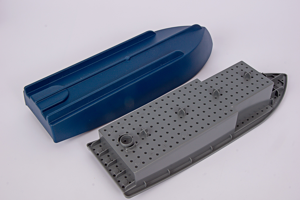 Im Karton sind drei Tüten aus dem üblichen, papierbasierten Kompositmaterial enthalten, dazu die beiden Bootsrümpfe und zwei Flexschläuche. Die Anleitungen kamen bei mir leider sehr verbogen an, wurden also achtlos in den Karton gestampft. Deutlich erfreulicher ist da der Umstand, dass keinerlei Aufkleber enthalten sind!