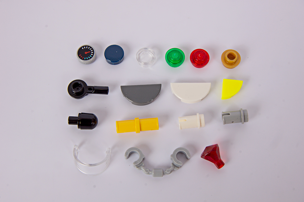 Trotz der recht geringen Teilezahl bleiben einige brauchbare Ersatzteile übrig, darunter ein Tachometer (98138pb175) und halbkreisförmige Kacheln (1748) in Weiß und Dunkelgrau.