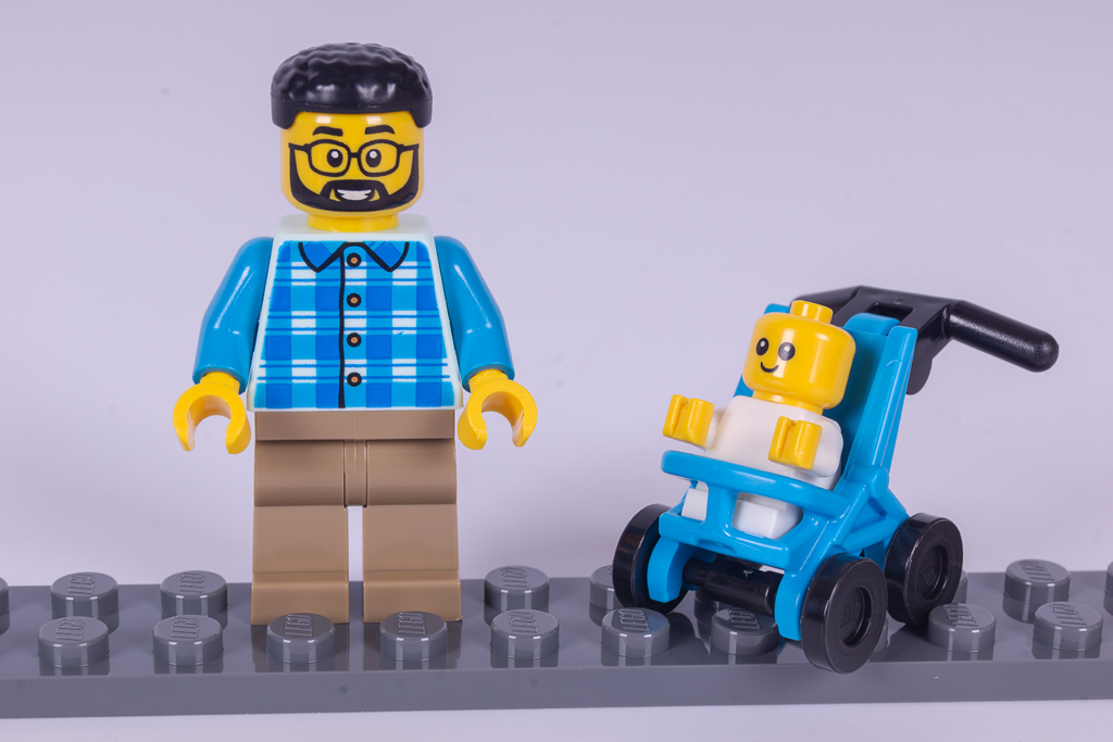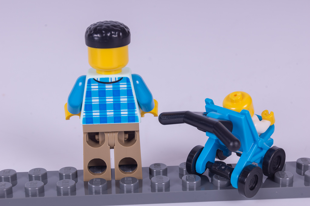 Das Baby dagegen hätte gern über einen dekorierten Strampler verfügen dürfen, aber wenigstens ist der Buggy (5491c02) von 2024 wieder enthalten! Und – es ist ein Baby! Auch zehn Jahre nach ihrer Einführung liebe ich diese Bewohner LEGO Citys! (Sie schreien nicht, machen sich nicht in die Windel, und prusten nicht herum, sondern sind stattdessen niedlich. Von welchem echten Baby kann man das schon behaupten?!)