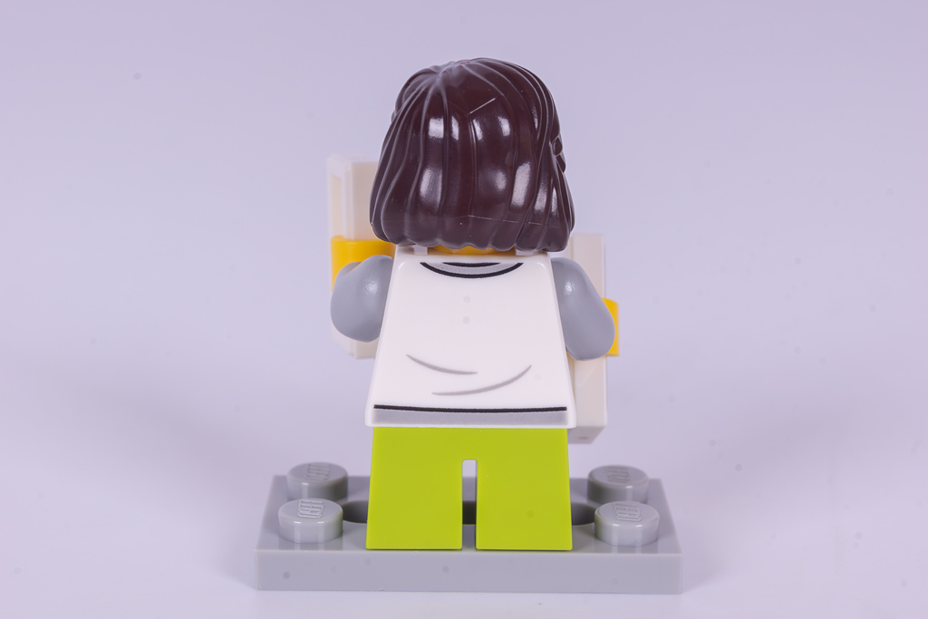 Das Mädchen trägt ein passendes Shirt mit Outdoor-Motiv (973pb4535c01) und verfügt über eine sehr nette Frisur (36037) in Dunkelbraun. Nach dem Baby ist es die mir liebste Minifigur des Sets.
