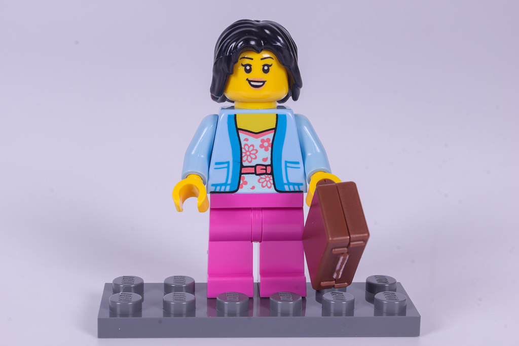Als letzte Minifigur bauen wir nun noch eine weitere Reisende (cty1929) mit bekanntem Blumen-Hemd unter der blauen Jacke (973pb4540c01). Es ist bemerkenswert, dass keine Minifigur neue Teile nutzt…