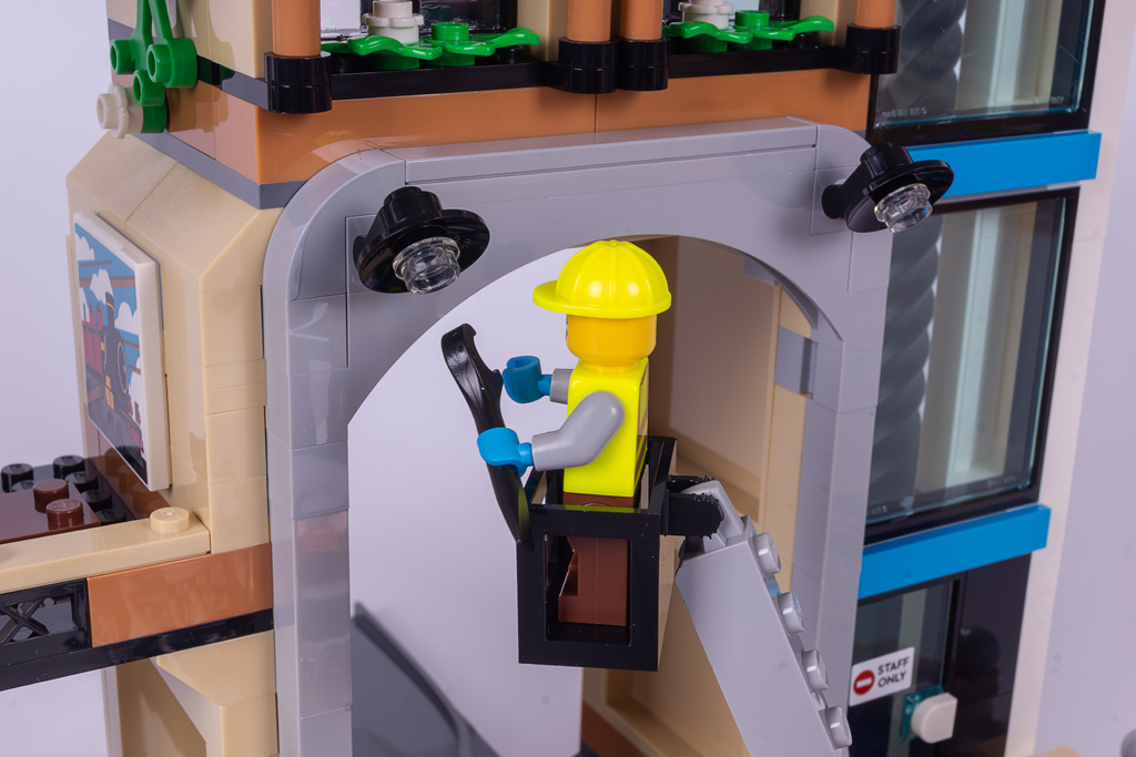 Außerdem ist es lustig, dass der eine Stationsvorsteher einen riesigen Aufzug bekommt, während für all die Fahrgäste keine wirkliche Möglichkeit besteht, zum Café hochzukommen. Mich stört es grundsätzlich nicht, wenn es bei City-Sets keine Treppen gibt, um von einer Ebene in die andere zu kommen, dennoch ist es amüsant, wenn man sieht, worauf hier der Fokus gelegt wurde. Wie bei der Deutschen Bahn, kann man sagen; die Mitarbeiter sind wichtiger als die Fahrgäste.