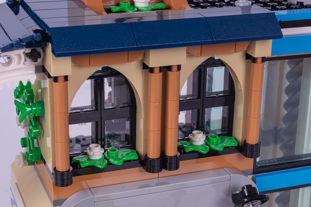 Über die mit Abstand schönste Fassade verfügt der Teil des Bahnhofs direkt über dem Gleis, ein Relikt aus der Frühzeit der Eisenbahngeschichte. Die Fenster werden von Bögen und Säulen flankiert und mit Blumenkästen verziert. Auch die Farbwahl in Tan und Medium Nougat gefällt mir fantastisch!