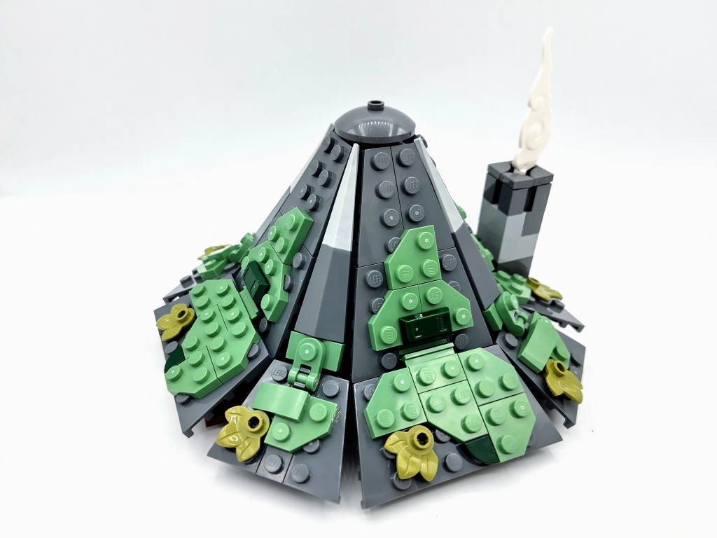 Der Aufbau geht gut von der Hand, immer wieder spannend finde ich, wie es den LEGO Designern gelingt, dass auch bei gewinkelter Bauweise hinterher alles bombenfest zusammenhält. Bei den enthaltenen Steinen dominieren die Farben hell- und dunkelgrau, sowie Grüntöne für die Botanik. Somit lassen sie sich auch ganz hervorragend verwenden, um eigene realistische Modelle, Häuser, Mauern, Burgen (eurer Kreativität sind keine Grenzen gesetzt) umzusetzen.