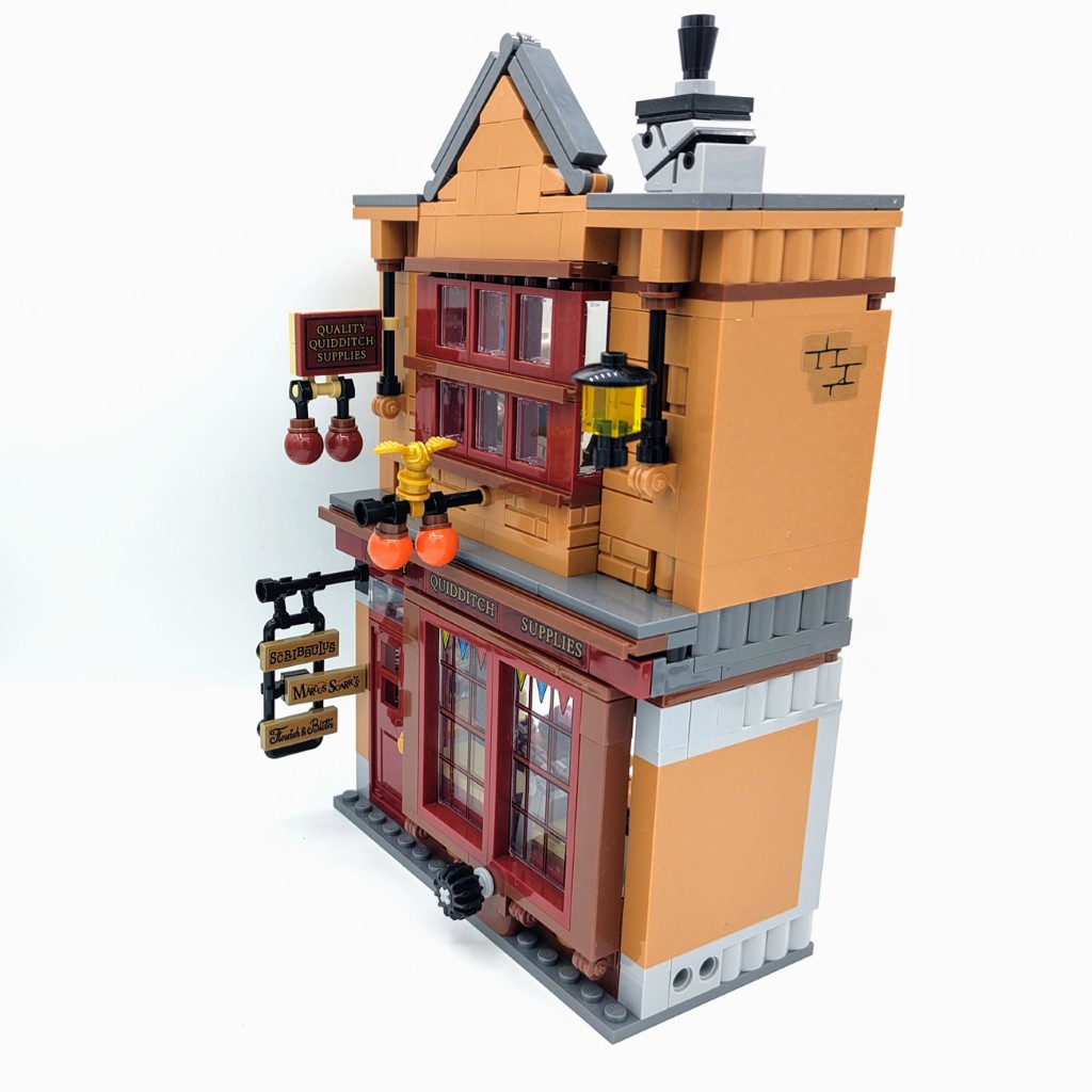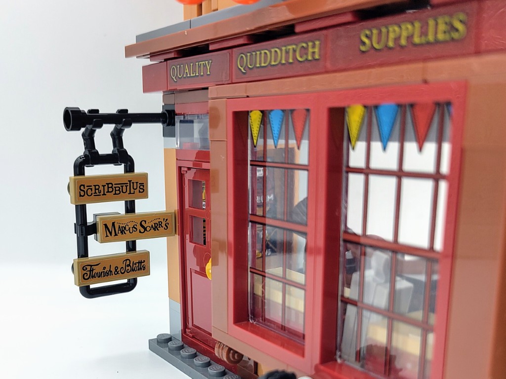 Mir gefallen modular kombinierbare Sets im LEGO Sortiment immer sehr – da stellt die Reihe der Geschäfte aus der Winkelgasse keine Ausnahme dar. Beide Gebäude passen sich sehr gut in die bestehende Reihe ein. Den Besen im Schaufenster beweglich zu gestalten ist eine tolle Idee, und auch sonst bieten beide Gebäude einige Spielmöglichkeiten. Leider ebenfalls unverändert im Vergleich zu den anderen Sets ist der recht hohe Preis, 795 Steine für 99,99 Euro sind auch in der Harry Potter Themenwelt recht viel, das Set ist jedoch im freien Handel schon mit deutlichen Preisnachlässen verfügbar.
