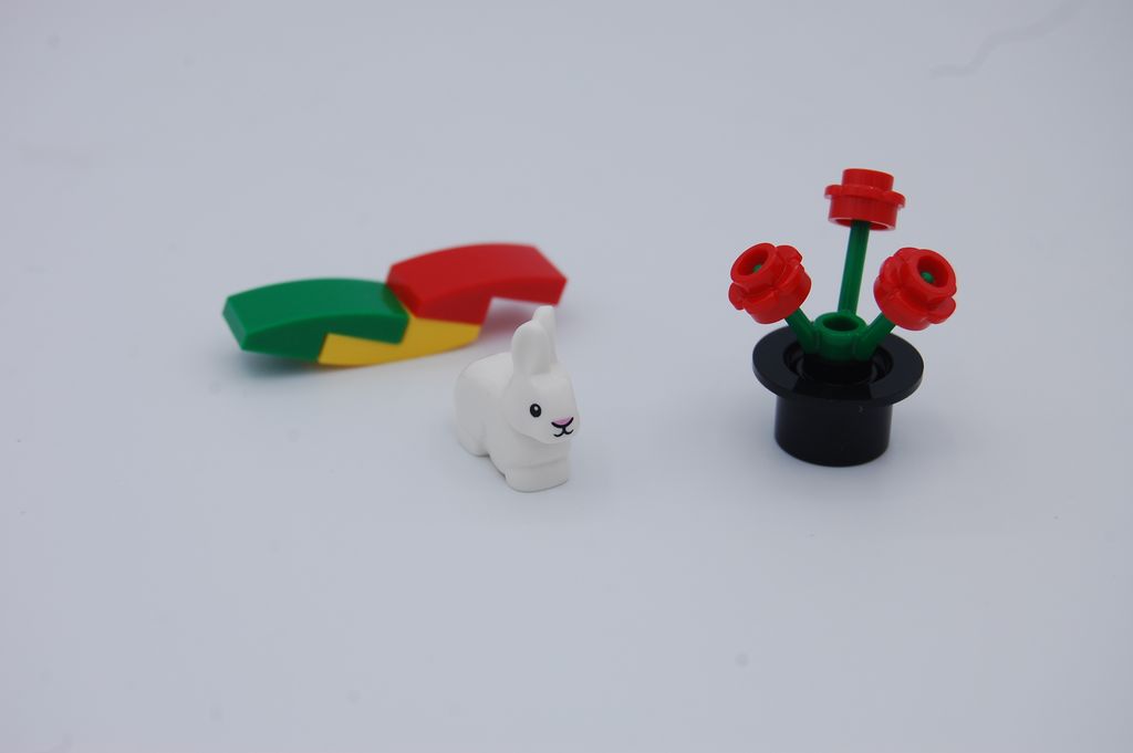 In diesen Bauschritten erhalten wir die Sängerin und die Magierin, die sich auf ihre Auftritte vorbereiten – und die Sängerin stellt unter den Minifiguren auf jeden Fall den Star des Sets dar. Ihr Kleid ist beidseitig bedruckt und geht wunderbar in den Torsodruck über. Die Magierin ist da etwas unspektakulärer, kommt aber mit einigen Utensilien für ihre Zaubertricks – Zylinder und Kaninchen dürfen nicht fehlen.