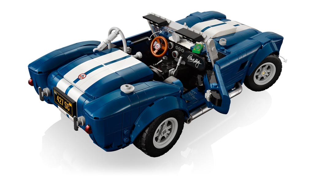 Der LEGO Icons 10357 Shelby Cobra 427 S/C erscheint am 1. Juli. Bei verbauten 1.241 Teilen wird eine UVP von 149,99 Euro abgerufen. Wer steigt ein ins Cabriolet? Ob die Rundungen des kultiges Vorbildes 🔎 mit Steinen gut nachempfunden wurden, darüber muss jeder Baumeister mit Affinität für Boliden selber urteilen – auf jeden Fall kein einfaches Unterfangen!