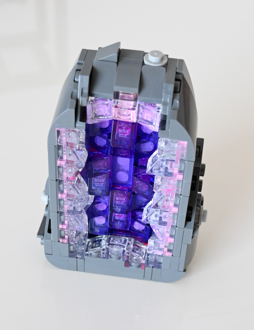 - Amethyst: Die Geode ist größer als im Fan-Entwurf und wirkt durch die Kombination aus transparenten und violetten Elementen sehr lebendig.