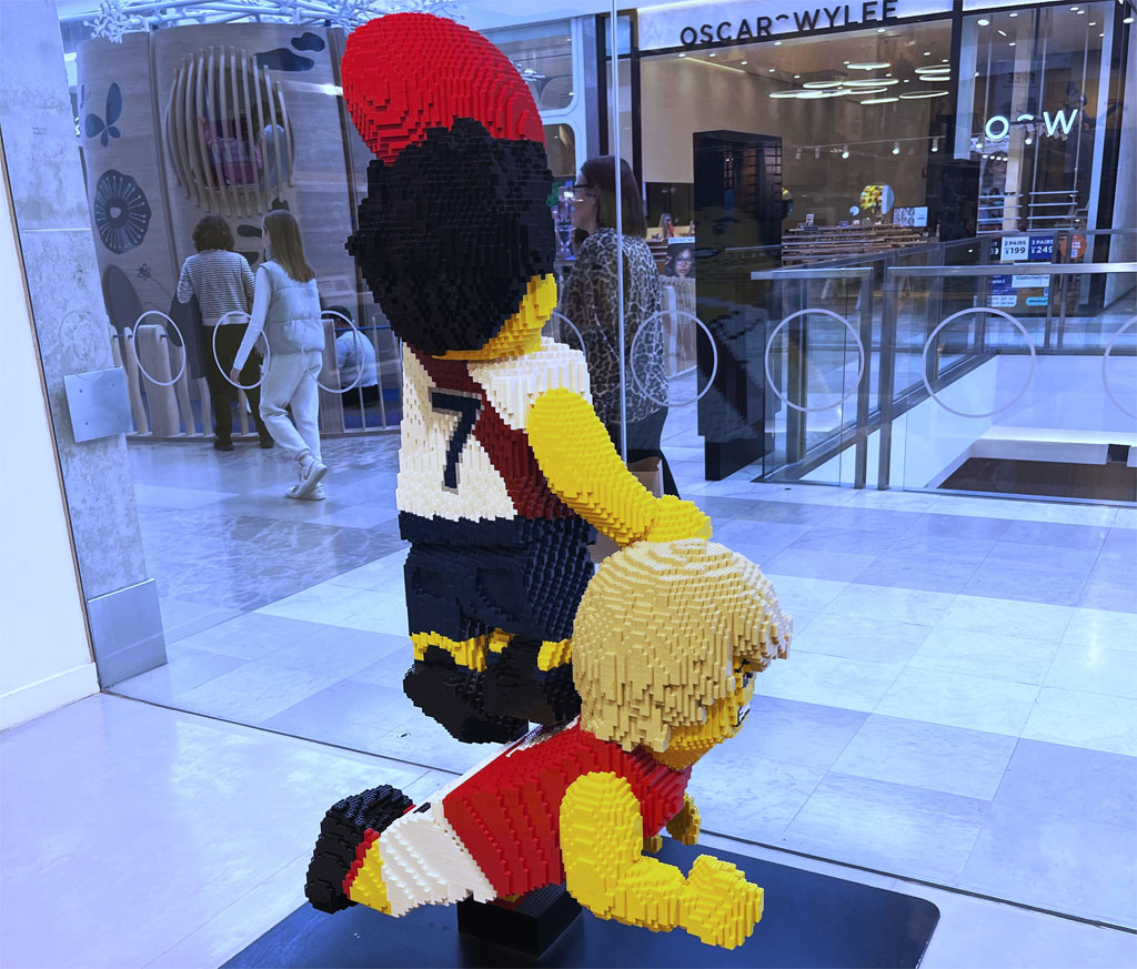 Und gerade als ich dachte, dass dies ein total legosteinfreier Urlaub werden würde, entdeckte ich im Westfield Doncaster – ganz stilecht gegenüber einem offiziellen Apple-Laden – einen LEGO Store. Wer bin ich, solch einem Wink des Schicksals nicht nachzugehen? Vor allem, weil das Schaufenster sehr schön und landestypisch gestaltet war. Zwei große LEGO-Figuren spielten „Australian Rules Football“, auf dem südlichen Kontinent oft einfach Footy genannt. (Dass es sich mitnichten um Rugby-Spieler handelt, sieht man daran, dass den Jerseys die Ärmel fehlen.) Footy kommt eigentlich aus dem Bundesstaat Victoria, erfreut sich aber mittlerweile überall in Australien großer Beliebtheit. Gespielt wird meist im Winter auf großen ovalen Feldern, auf denen man im Sommer dem Cricket frönt. Im Gegensatz zum urenglischen Schlagballspiel ist Footy sehr körperbetont und erinnert nicht nur aufgrund des eiförmigen Balls an Rugby. Das Team meines Vertrauens spielt im örtlichen MCG, dem Melbourne Cricket Ground, in dem zu Finalspielen auch schon mal 100.000+ Leute passen. Da kommt man schon ins Grübeln, ob man noch von einer Randsportart sprechen kann.