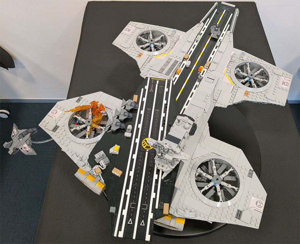 Mir gefällt die Umsetzung (bis auf die Flammen, aber die kann man ja auch problemlos weglassen) und ich mag auch das MCU (zumindest diese Frühphase, die hätten mit dem Thanosfinale aufhören sollen, aber das ist eine andere Geschichte). Aber trotzdem kommt kein Wunsch auf, den Carrier mein Eigen zu nennen. Das war schon beim ersten Legocarrier so. Beim begrenzten Platz und Finanzrahmen ist mir das aber auch ganz recht, da muss man einfach priorisieren. Gerade wenn ich da an die Gerüchte über eine Sagrada Familia denke, bin ich ganz froh, dass ich hier keine Probleme habe, meine Impulskontrolle im Griff zu behalten.