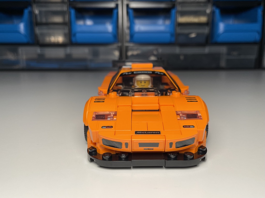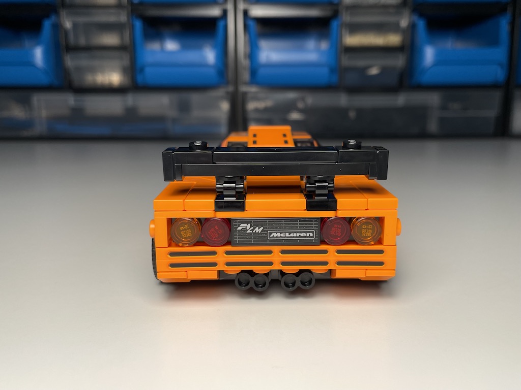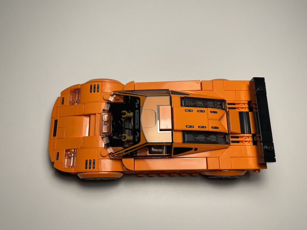 Der McLaren F1 LM wurde in den 90ern sowohl für die Straße als auch für die Rennstrecke hergestellt. Die reale Vorlage wies einige Rundungen auf, die ich bei der LEGO Umsetzung gerade auf der Motorhaube um die Scheinwerfer herum vermisse. Sowas ist zwar mit LEGO nicht leicht darzustellen, aber irgendwie stört mich die zu flache Motorhaube. Der Rest des Fahrzeugs ist in meinen Augen gut umgesetzt. Gerade die Details an den Seiten gefallen mir und die knallige Farbe überzeugt mich, da sie die klassische Rennwagenoptik unterstützt. Außerdem positiv hervorzuheben ist wie glatt das Auto durch die vielen Fliesen gehalten ist. Man sieht kaum noch Noppen, was ich sehr ansprechend finde.
