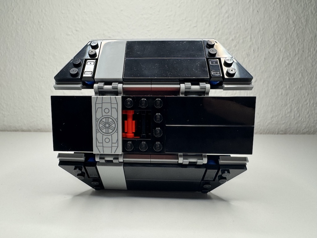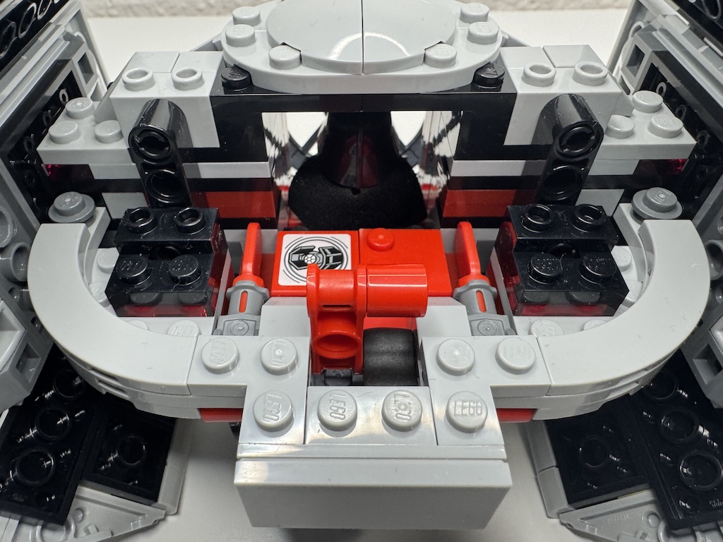 Die Smart Play Funktionen drehen sich hier allesamt um den TIE Advanced, weil dieser den einzigen SMART Tag im Set beherbergt. Eingesetzt füllt er das große Loch am heck des Jägers wenigstens etwas aus, von Ästhetik ist dieser aber auch so noch meilenweit entfernt. Beim „Fliegen“ des Schiffs werden Soundeffekte aus dem Stein gespielt, die jedoch allesamt sehr blechern wirken und nicht einmal das ikonische Kreischen der TIE Fighter nachstellt. Auf ikonische Star Wars Geräusche wurde beim gesamten Konzept leider verzichtet. Durch den auffällig roten Hebel können Blasterschüsse abgefeuert werden, bei denen der Stein auch aufleuchtet. Ansatzweise ansprechend bei den Funktionen fand ich einzig die 8-Bit-Version des Imperial March, die ertönt, wenn SMART Vader ins Cockpit gesetzt wird.