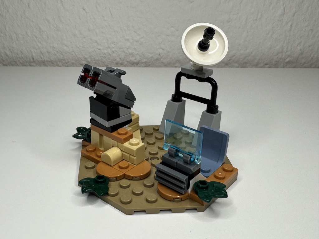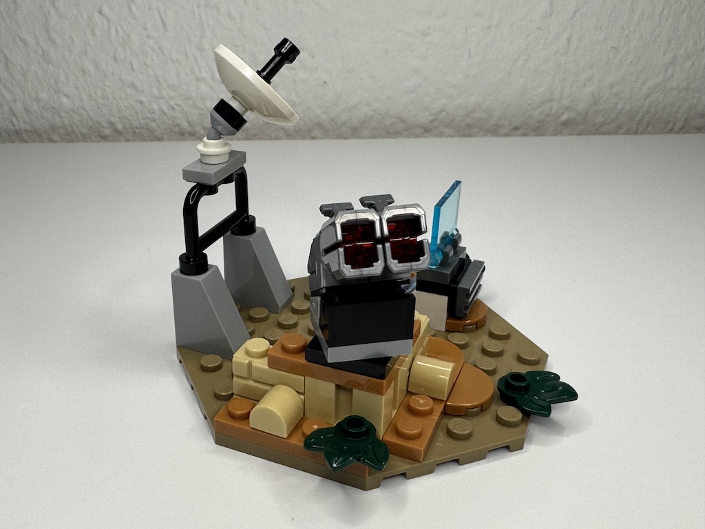 Für mich ist der einzige Lichtblick dieses Sets noch dieser kleine Rebellenstützpunkt. Das sagt mehr als genug aus, da dieser das einzige Gebilde im Set ist, das nicht mit dem SMART Brick interagiert. Ein kleiner Kommandoposten mit Holoschirm ist hier angedeutet, genauso eine Radarschüssel. Zwei Studshooter stellen ein Geschütz dar.