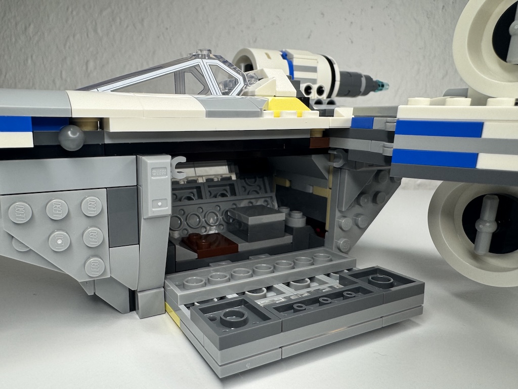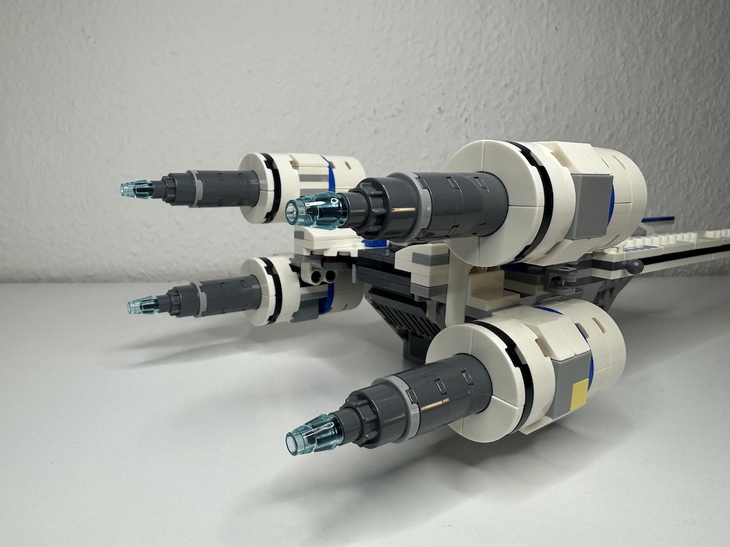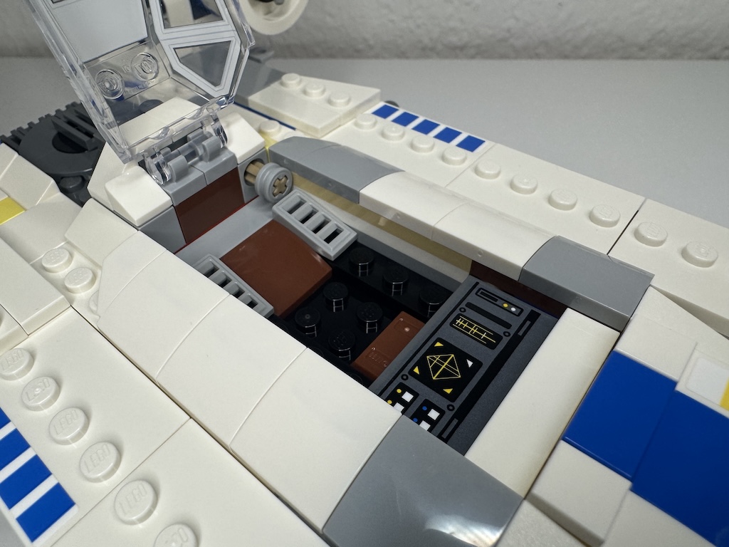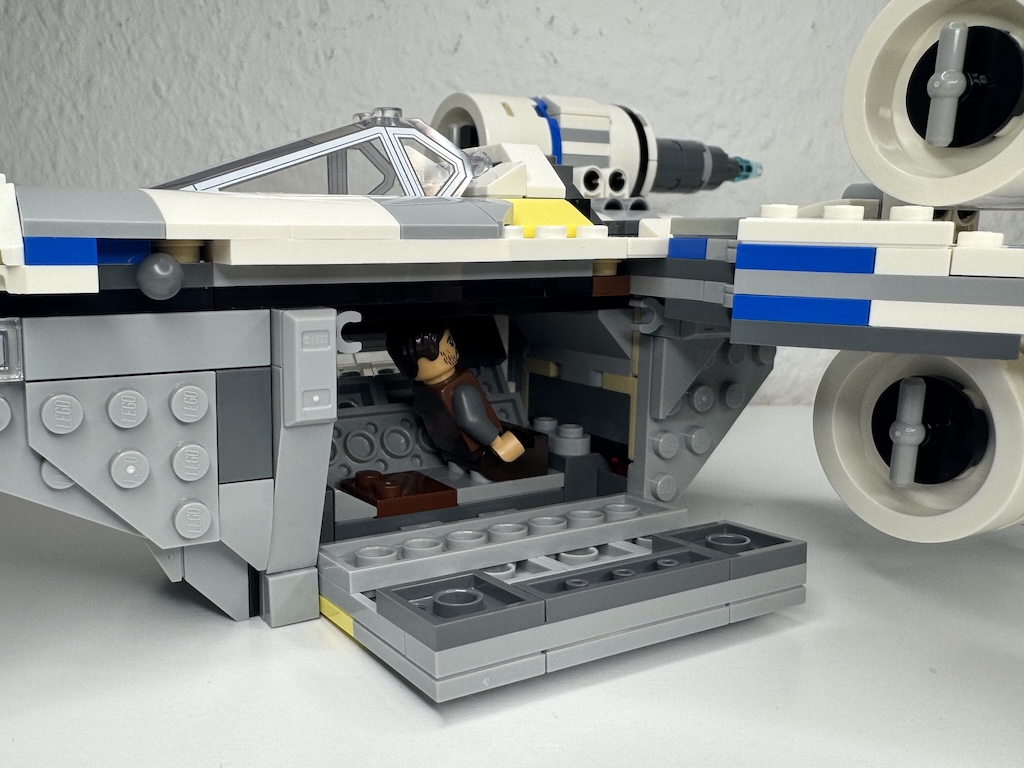 Ich finde, der U-Wing sieht tatsächlich auch in dieser Größe noch passabel aus, aber so imposant wie der Vorgänger (den ich gebaut habe), ist er nicht. Ich verstehe insgesamt nicht, warum LEGO aktuell offensichtlich viele Star Wars Modelle in der neuen Variante „schrumpfen“ lässt. Am gruseligsten ist die Smart-Brick-Variante des X-Wings. Schade, dass so offenbar Steine eingespart werden sollen. Das führt dann natürlich gezwungenermaßen zu beengten Verhältnissen im Cockpit und Co.