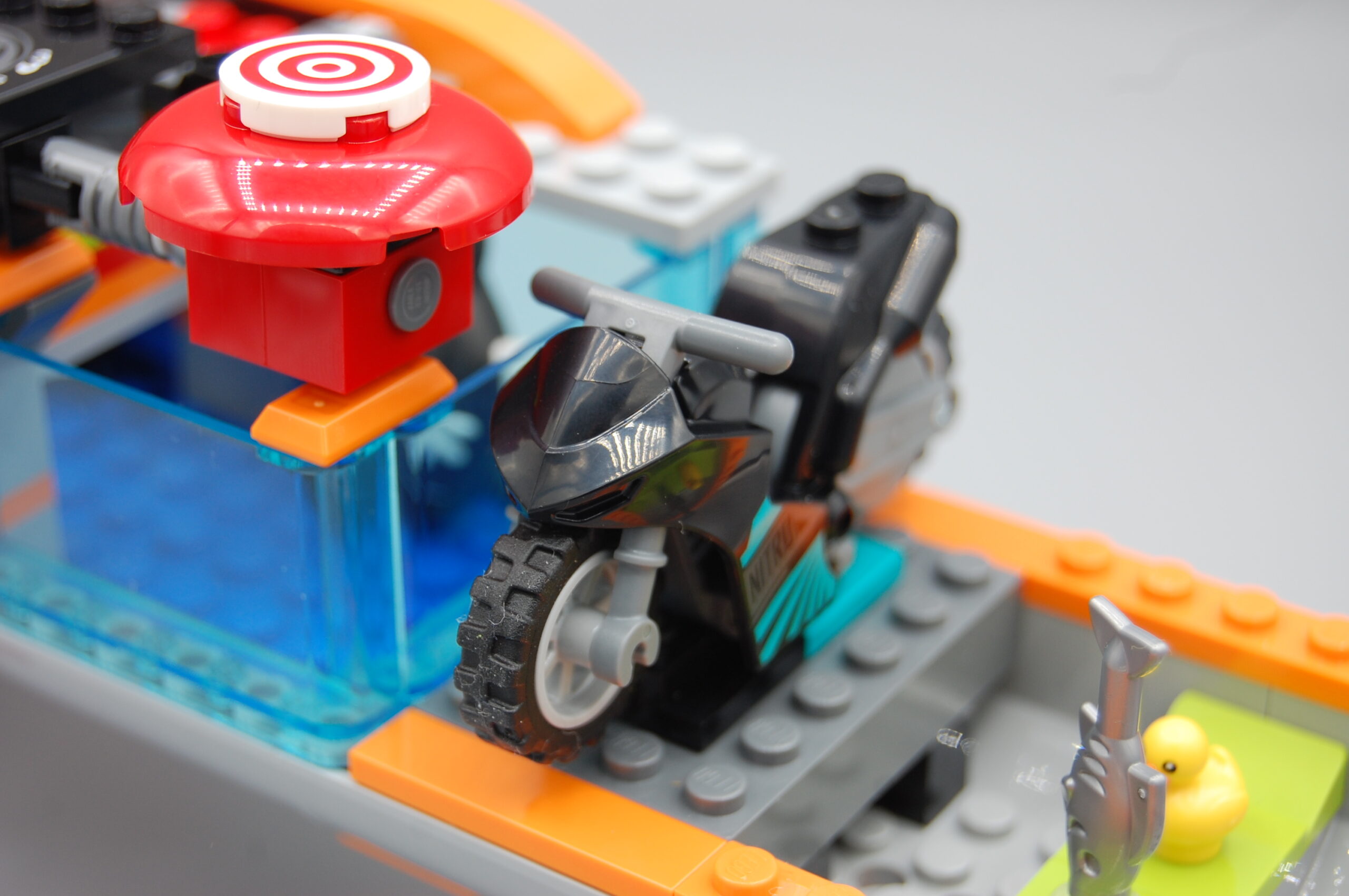 Dabei erweist sich das Treffen deutlich schwieriger als gedacht – häufig fliegt das Motorrad vorbei oder landet selber im Wasser. Wird die Zielscheibe jedoch getroffen, funktioniert die Funktion wie gewünscht und ist auf jeden Fall spaßig. Das fotografische Einfangen war relativ schwierig, ich habe hier aber die besten Bilder zusammengestellt.
