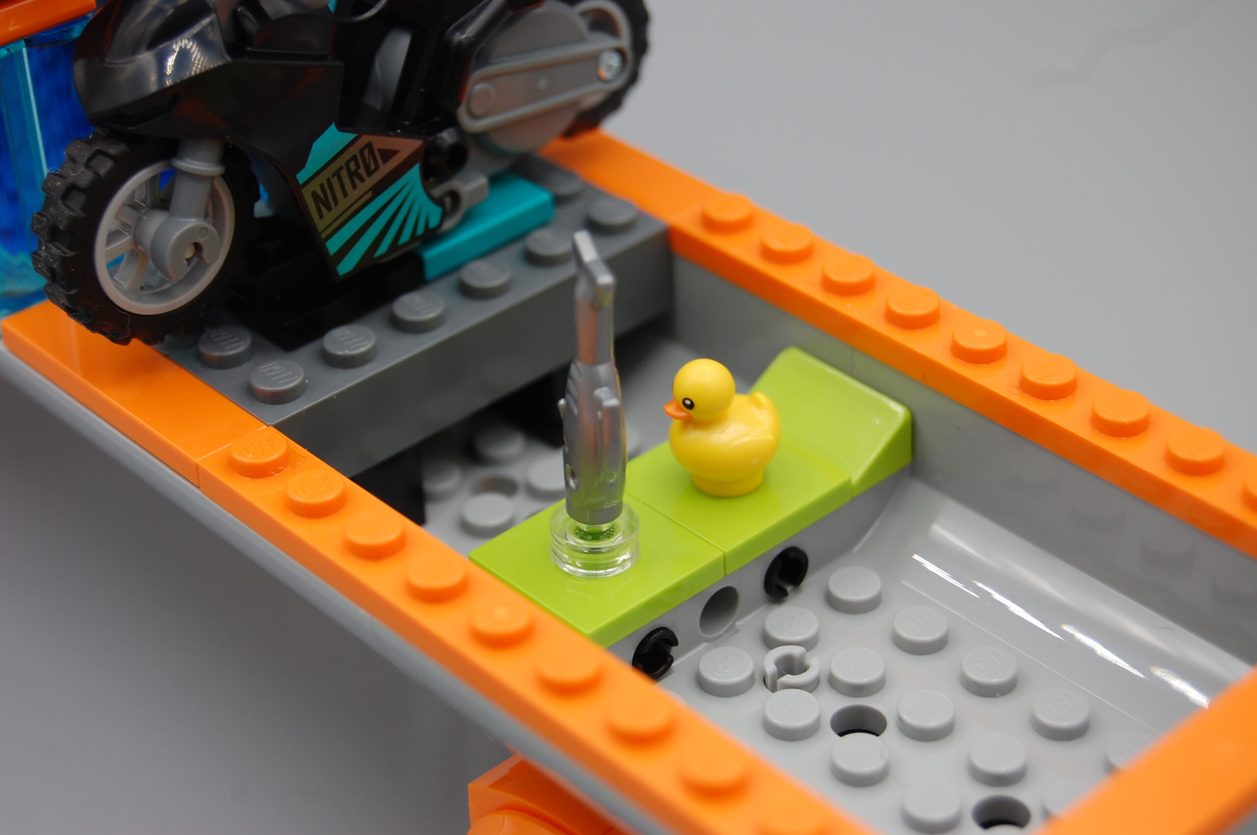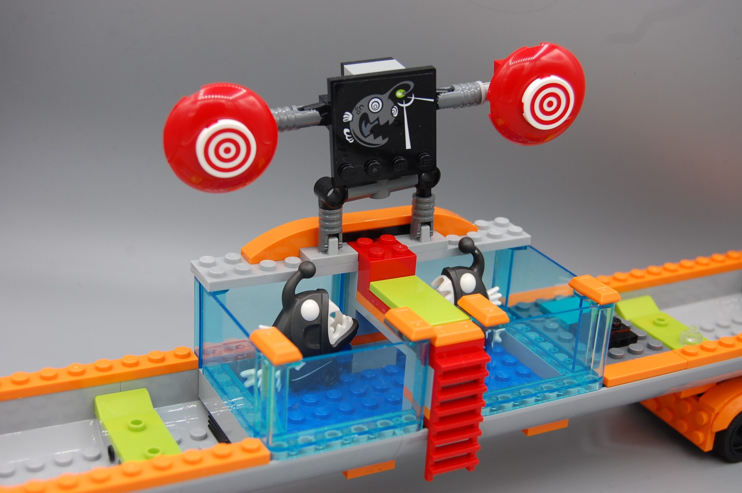 Als zusätzlicher Anreiz zum simplen Springen über die Rampe geht es in diesem Set darum, durch Treffen der Zielscheibe den Clown ins Wasserbad zu schicken – zu den beiden dort wartenden Anglefischen, die schon aus den Meeresforschersets bekannt sind.