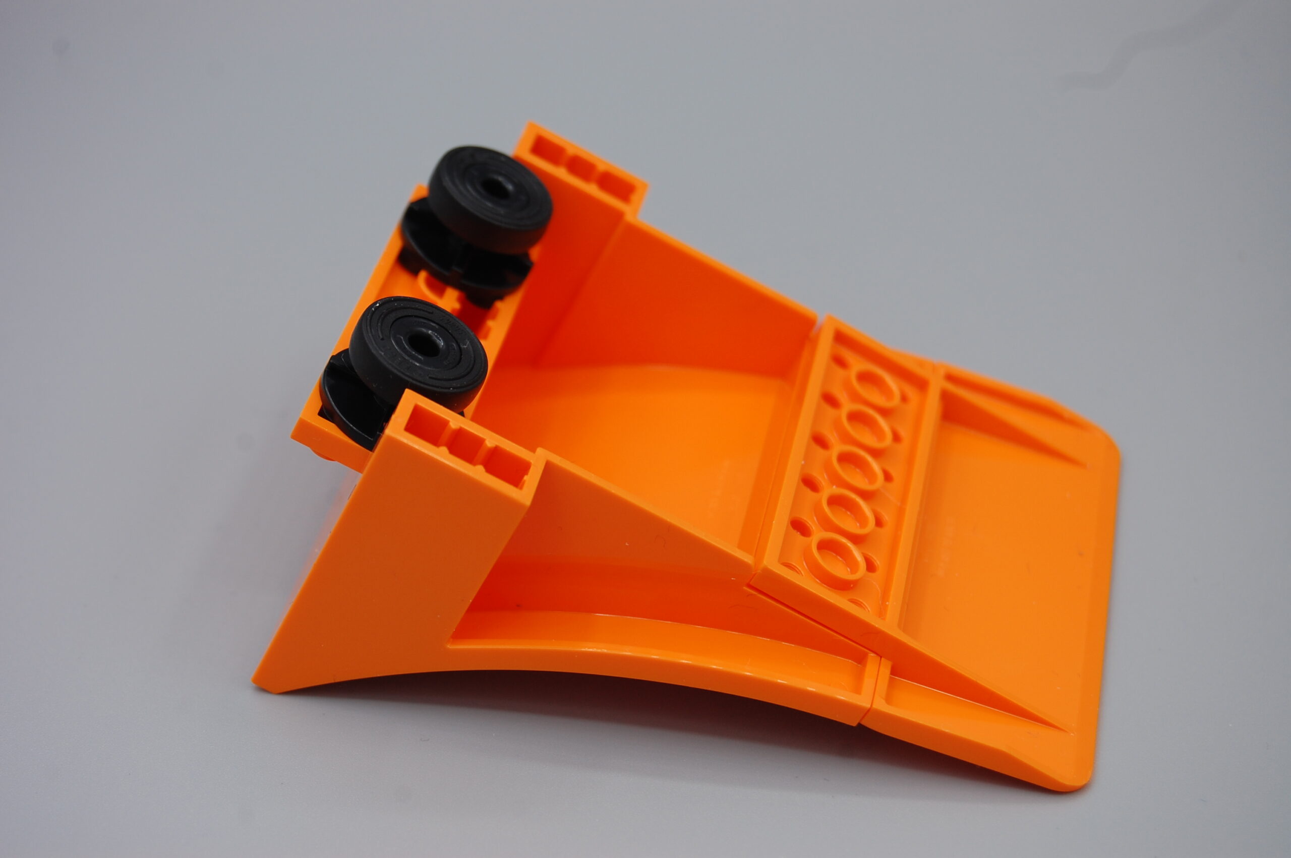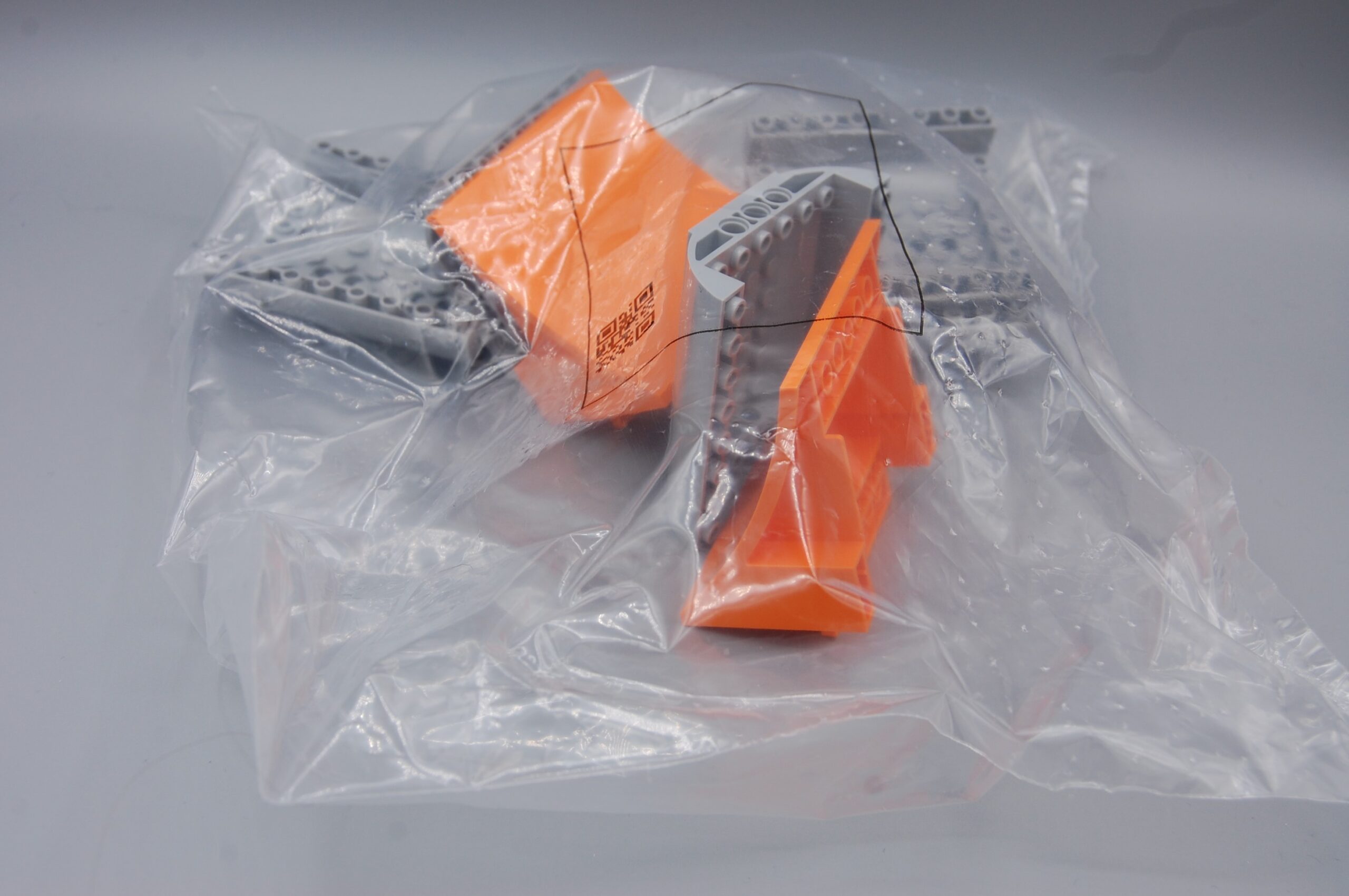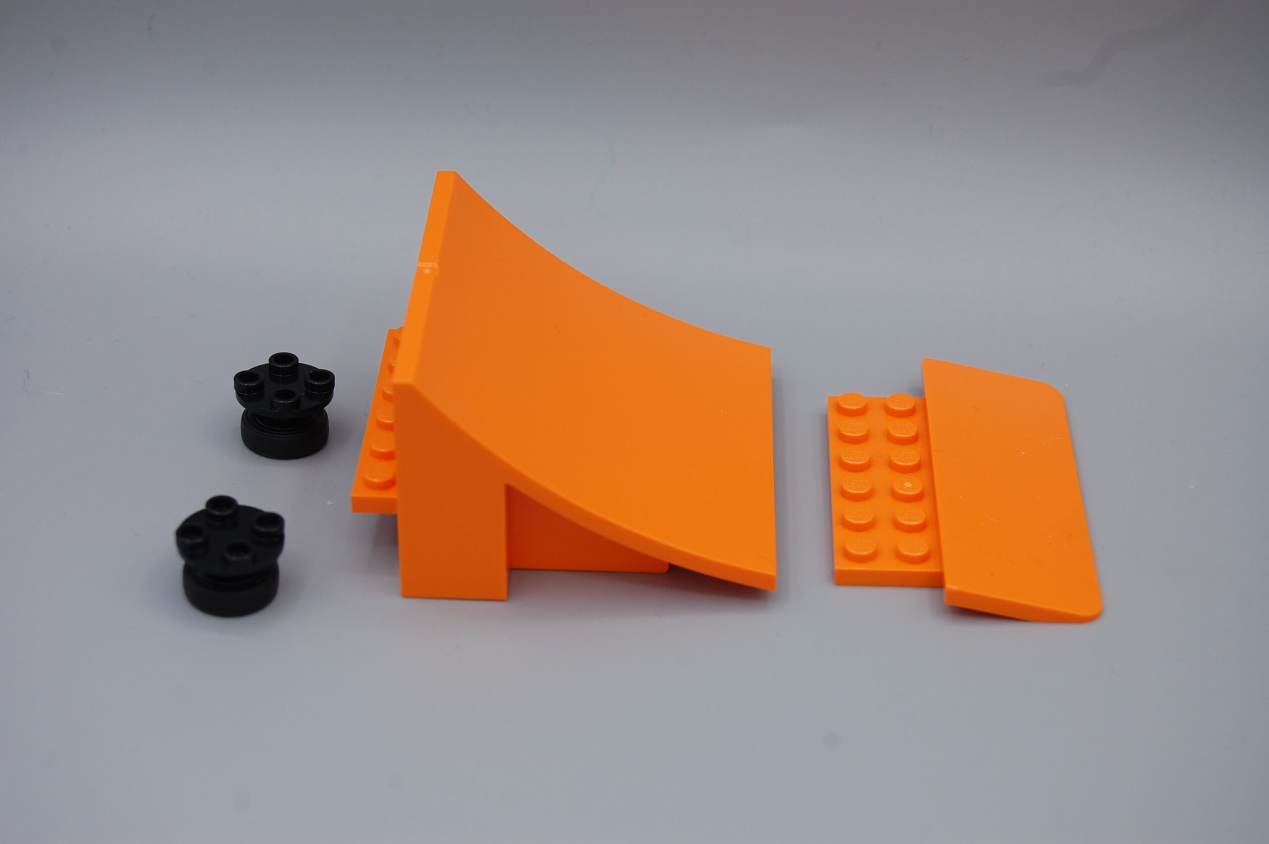Die erste Tüte ist noch recht übersichtlich. Hier wird die Rampe gebaut, die aus zwei neuen Formteilen besteht. Gegen Verrutschen wird sie mit zwei Reifen gesichert.