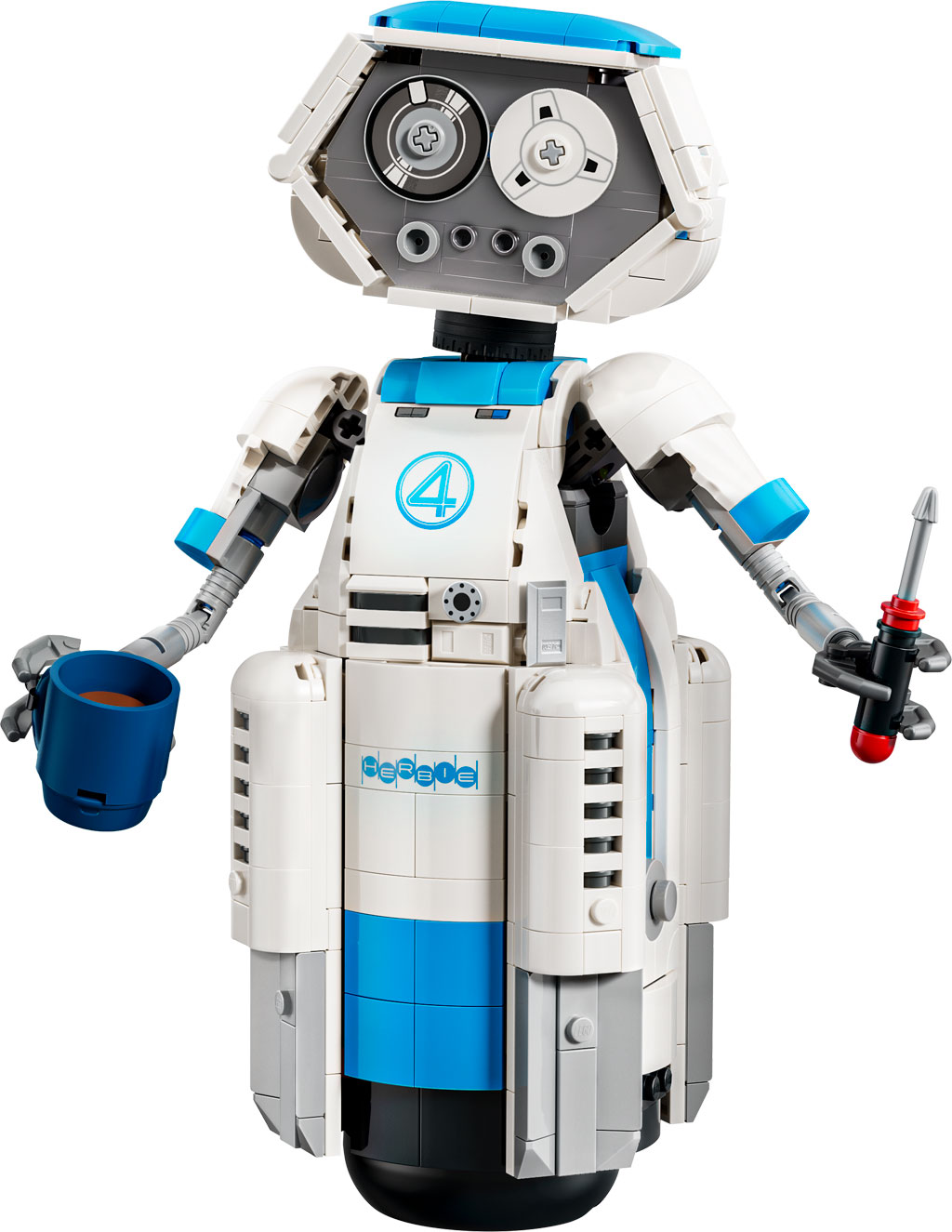 Mit dem LEGO Bauset „H.E.R.B.I.E.“ aus „Die Fantastischen Vier“ (76339) können Kinder fantastische Superhelden-Deko in die Hände bekommen. Diese große LEGO® Nachbildung eines der beliebtesten Charaktere aus dem Film ist eine tolle Geschenkidee für Jungen und Mädchen ab 10 Jahren. Das H.E.R.B.I.E.-Modell zeigt den liebenswerten Roboter mit seinen charakteristischen Tonbandgeräte-Augen, die sich automatisch mitdrehen, wenn er den Kopf dreht. Er hat voll bewegliche Arme und Finger, mit denen er seinen Lieblingsbecher und Schraubenzieher halten kann. Wenn sie nicht gebraucht werden, lassen sich beide Accessoires ordentlich hinter einer Klappe im Oberkörper des Roboters verstauen. Dieses kreative Spielzeug ist ein tolles Geburtstags-, Weihnachts- oder einfach so Geschenk für Marvel-Fans. Mit der LEGO Builder App können Kinder selbstbewusst bauen – zoomen, in 3D drehen und den Baufortschritt mit leicht verständlichen digitalen Anweisungen verfolgen. Das Bauset enthält 747 Teile.