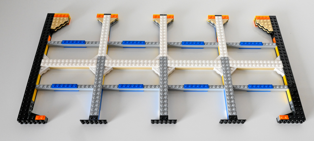 Auf ein recht robustes Gerippe werden die 16×16 Noppen großen Bodenplatten des Aquariums gebaut.