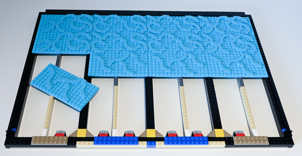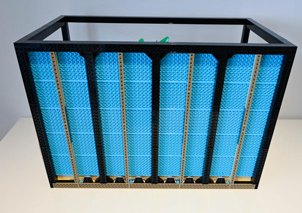 Im nächsten größeren Abschnitt folgt nun die Rückwand des Aquariums. Diese besteht ebenfalls aus einem recht stabil gebauten Rahmen, bestückt mit 8×16 Noppen großen Platten.