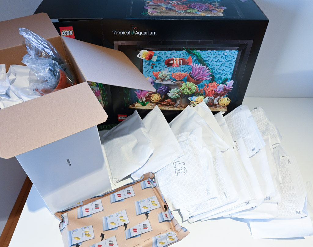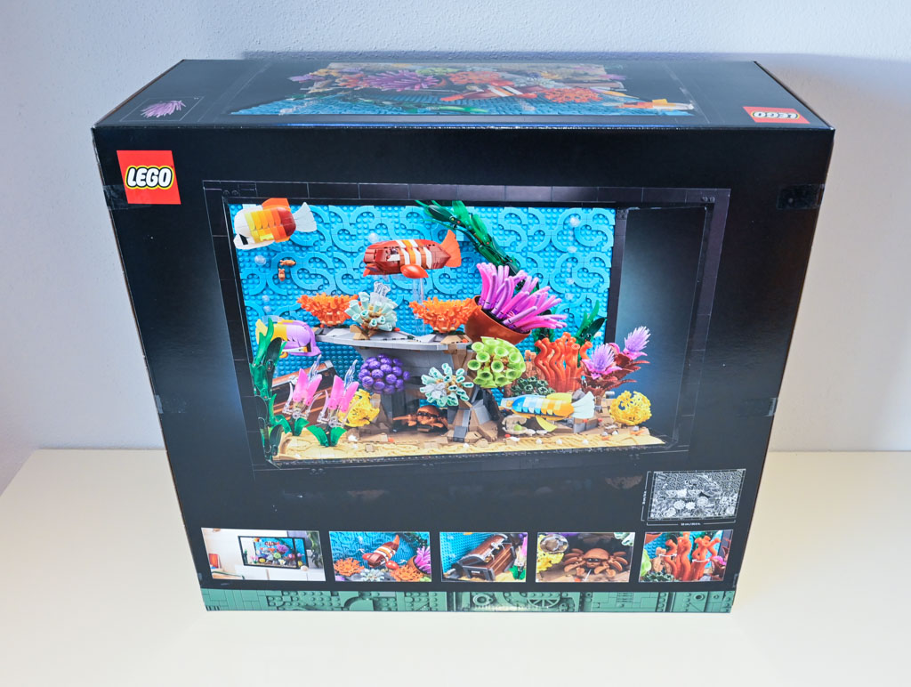 Ich hab’s im LEGO-Store gesehen und man bleibt leider nicht dran kleben. Es wirkt sehr leer und steril. Einige Pflanzen sind ganz nett, aber es gibt zu wenige. Die Fische sind langweilig und Meeresboden und Hinterwand viel zu monoton. Beim schwarzen Rahmen fragt man sich halt, was das soll. Das hat mich schon beim kleinen Creator 3in1 Aquarium gestört. Dadurch wirkt das ganze wie ein DDR-Kinderzimmer-Aquarium, dass man aus alten Fensterscheiben mit Silicon, Epoxidharz und schwarzem Isolierband zusammengeschustert hat, weil es nichts anderes gab. Über den Preis braucht man eigentlich nicht zu reden. Maßlos überzogen.
