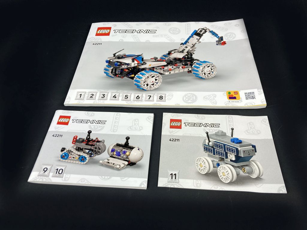 Der Aufbau des gesamten Sets ist in insgesamt 11 Bauabschnitte unterteilt, die Teile befinden sich in den entsprechend nummerierten Tütchen. Aus den ersten acht Abschnitten entsteht der große Mondrover. Zwei weitere bilden den Schürfrover und den Probenbehälter. Aus Nummer 11 wird entspannt der MAPP-Rover gebaut.