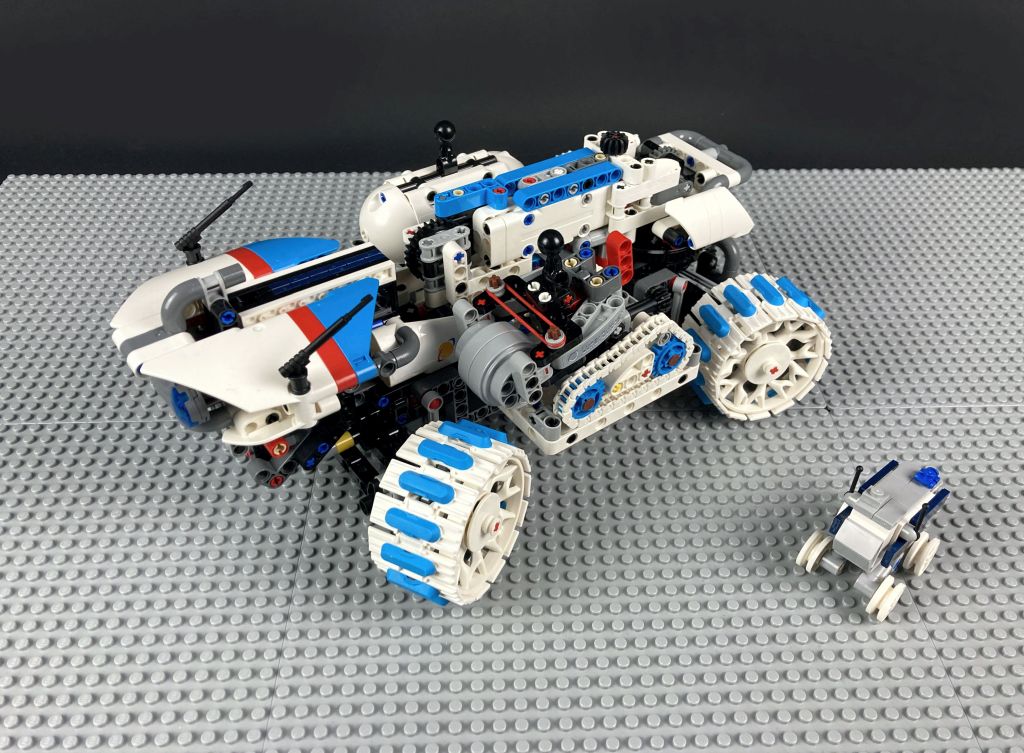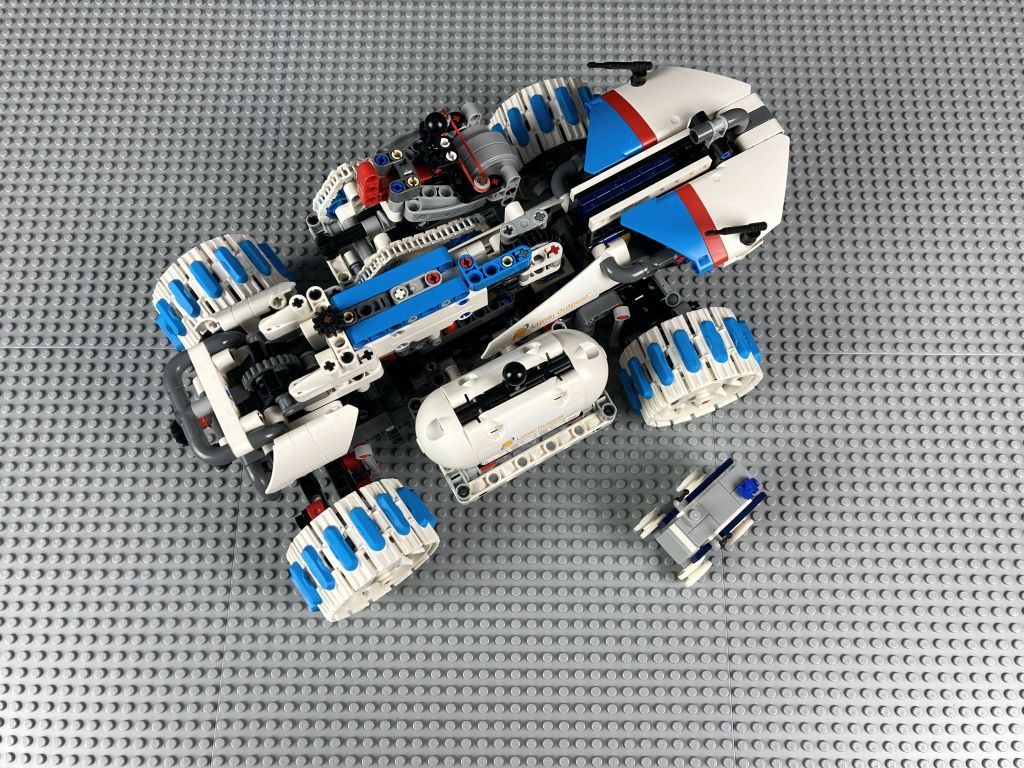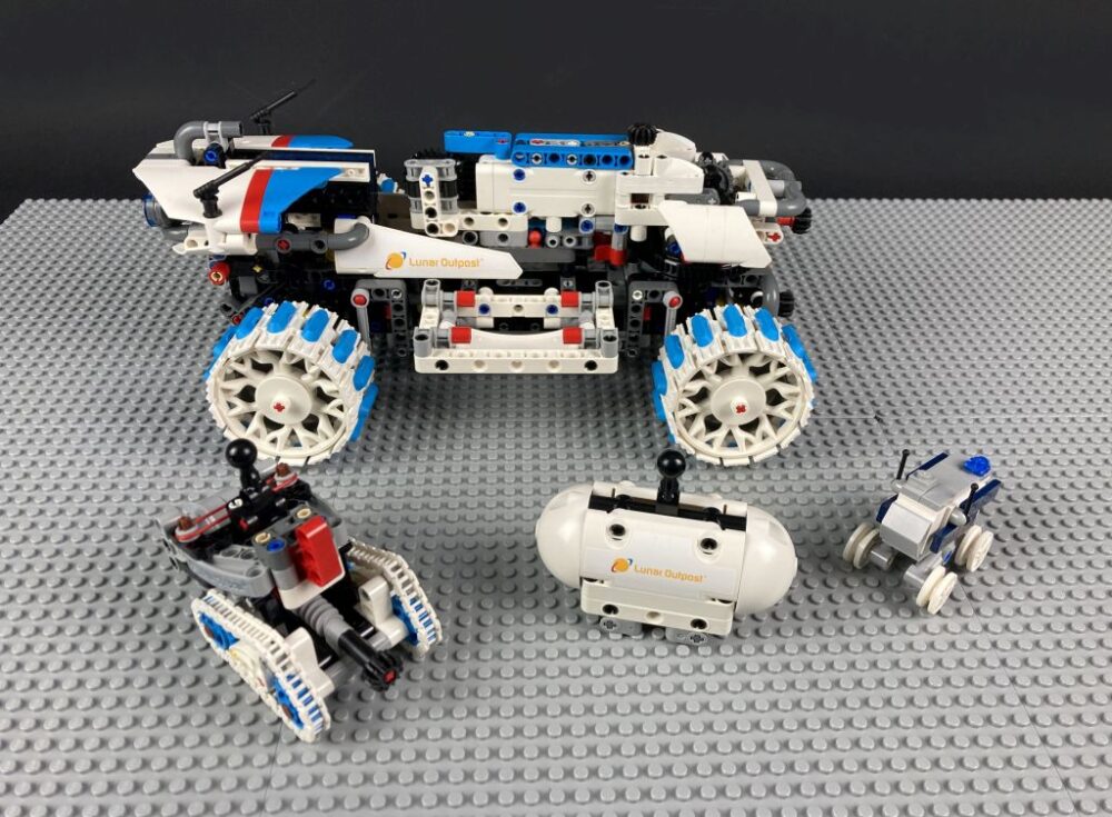 Das Set besteht aus vier einzelnen Fahrzeugen beziehungsweise Komponenten. Das große Hauptmodell ist ein von Entwicklungen der Firma Lunar Outpost inspirierter Mondrover. Lunar Outpost ist ein Unternehmen mit Sitz in den USA, das sich auf Mondrover und ähnliche Fahrzeuge spezialisiert hat. Dabei werden sie auch bei den oben erwähnten Artemis Missionen mit an Bord sein und sind, wie der Setname schon suggeriert, Kooperationspartner für das -nicht mehr ganz so- neue Technic Set. Nebenbei sei erwähnt, dass die NASA den Begriff „Lunar Outpost“ auch wortwörtlich für eine Basis auf dem Mond nutzt. Der Außenposten würde zum einen Forschungszwecken auf unserem Trabanten dienen, zum anderen als mögliches Sprungbrett für Missionen zum Mars.