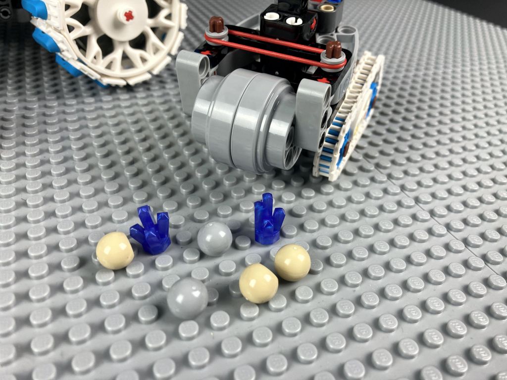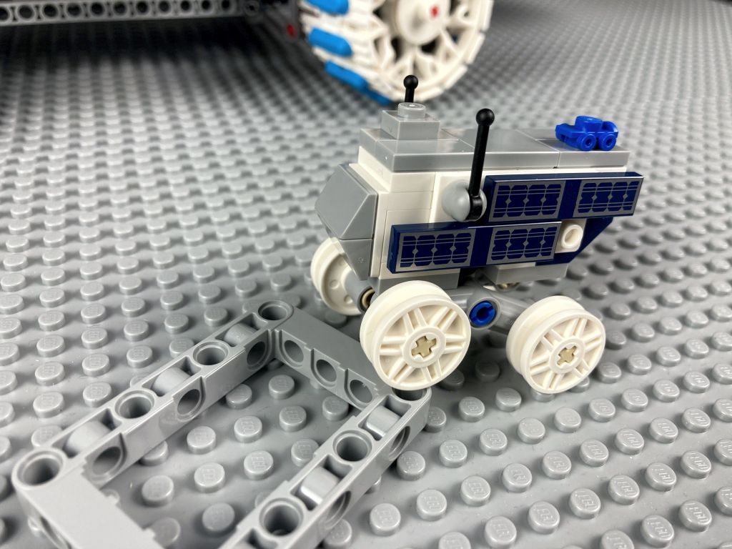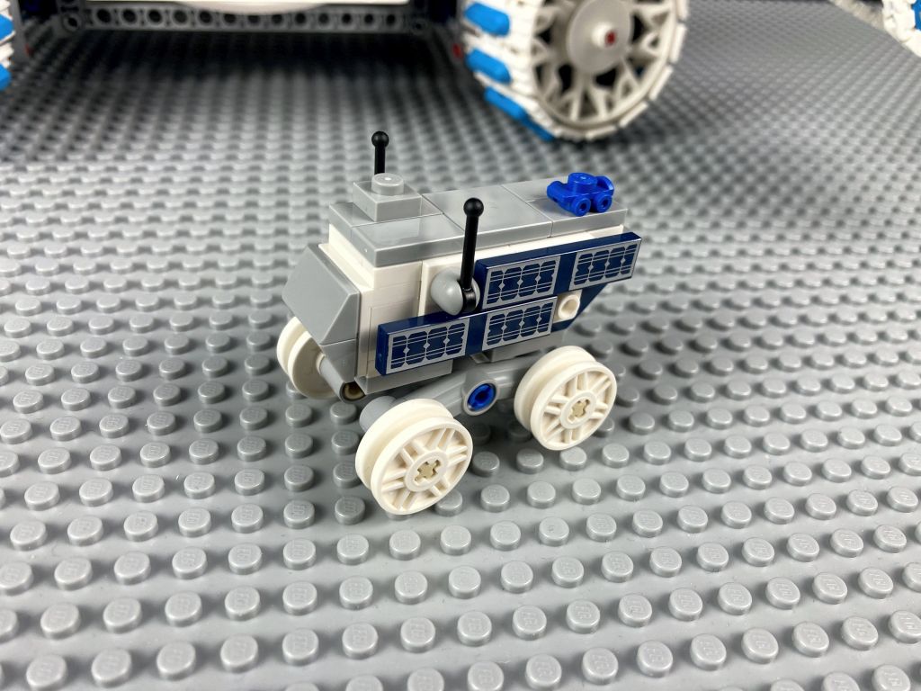 Neben dem großen Mondrover gibt es einen kleinen Schürfrover zum Aufnehmen von Gesteinsproben, einen MAPP-Rover und ein Probenbehälter. Ich zumindest hatte keine Ahnung, was ein MAPP-Rover ist, bis ich mich mit diesem LEGO Set beschäftigen durfte. Wem es ebenso ergeht: Die Abkürzung steht für Mobile Autonomous Prospecting Platform, also auf Deutsch in etwa eine mobile autonome Erkundungsplattform. Ein kleiner Rover der dazu ausgelegt ist, die Mondoberfläche zu erkunden und Resourcen aufzuspüren. Das reale Vorbild ist vor einem Jahr erfolgreich auf dem Mond in der Nähe des Südpols gelandet.